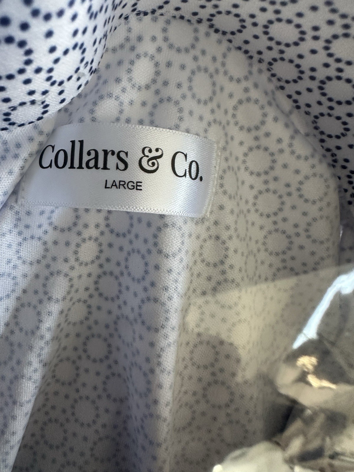 как выглядит NWOT Men Collars Co Button Up Polo Shirt Geometric Blue White Size Large фото