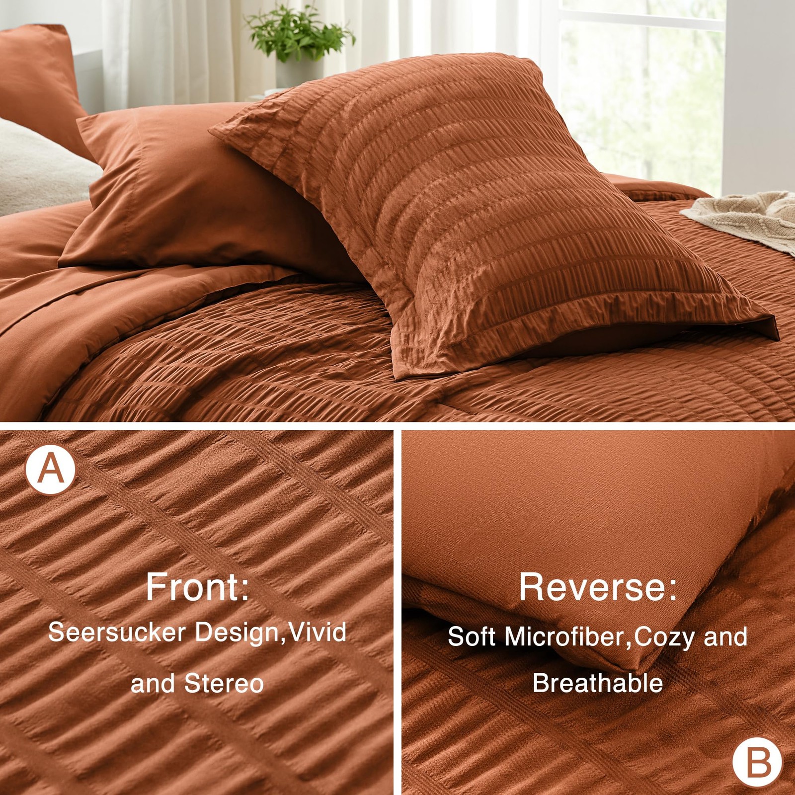Seersucker Terracotta Queen Comforter Set 7 Pieces All Season Bedding Set Queen