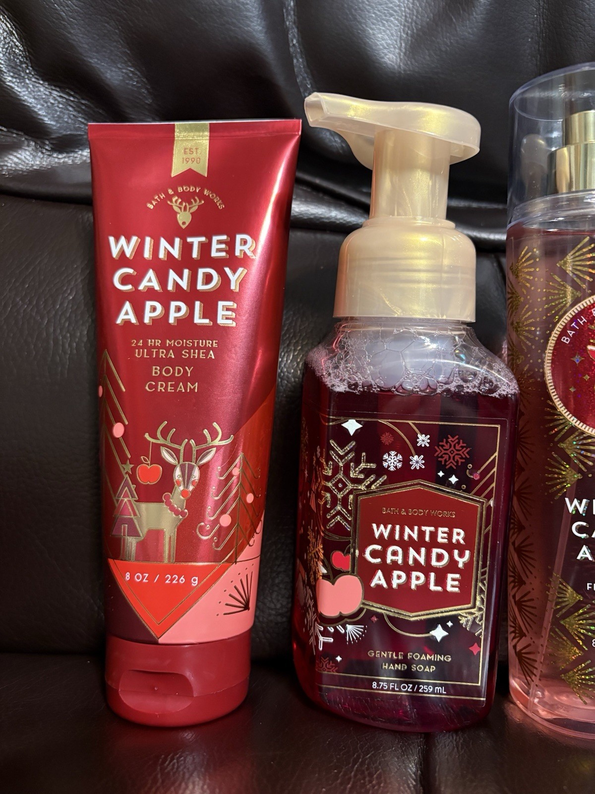 Bath Body Works 4pc Winter Candy Apple Gift Set: Body Cream Mist Gel Soap NEW