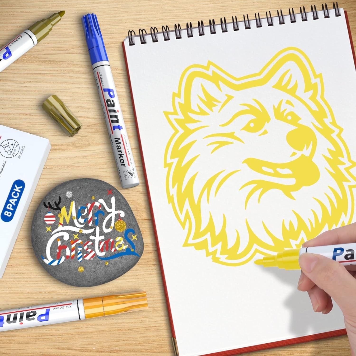 White Permanent Marker Waterproof - 8 White Paint Markers for Metal Surfaces Tir