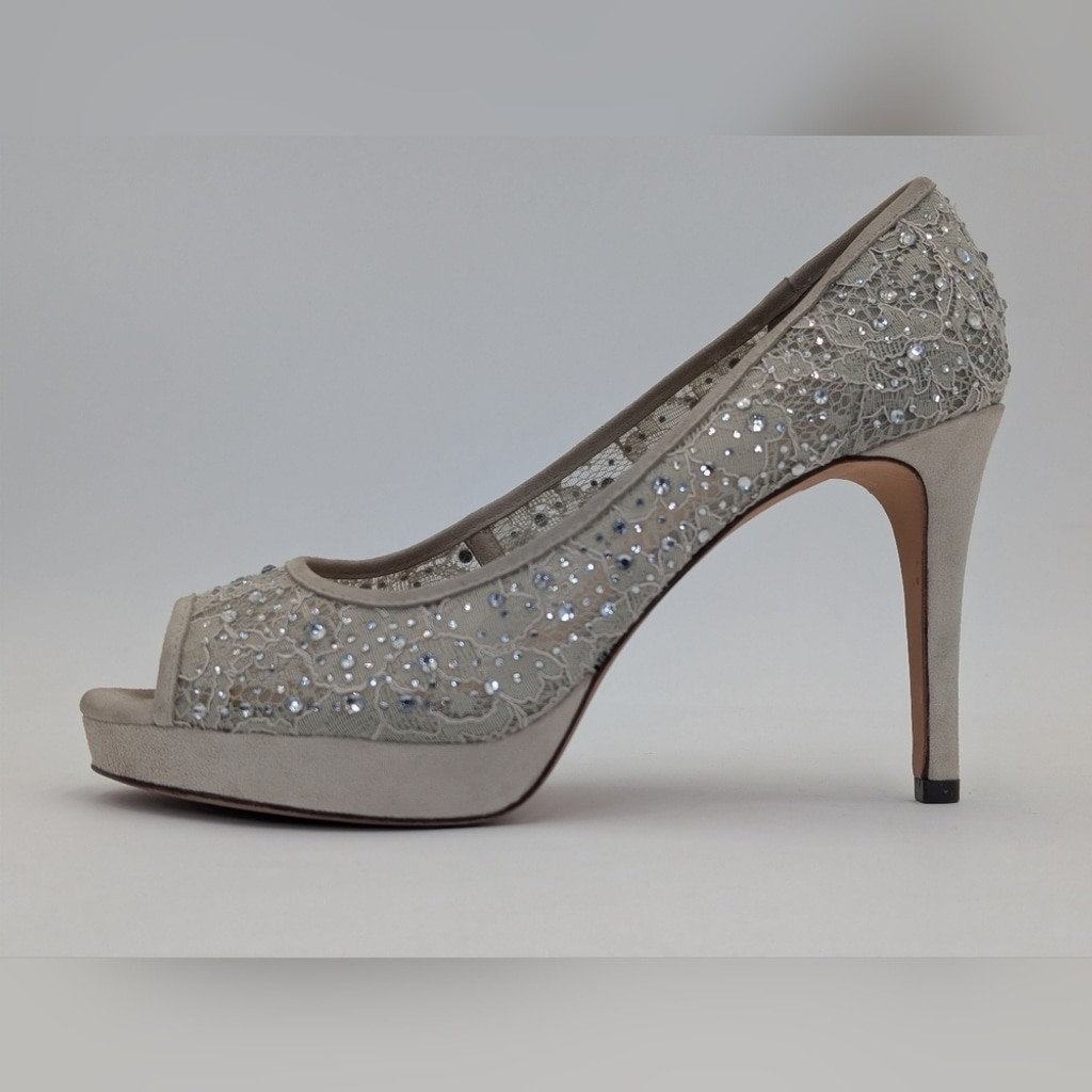 как выглядит Antonio Melani Eliana Pump Size 8.5M Silver Mesh Rhinestone Studded Embellished фото