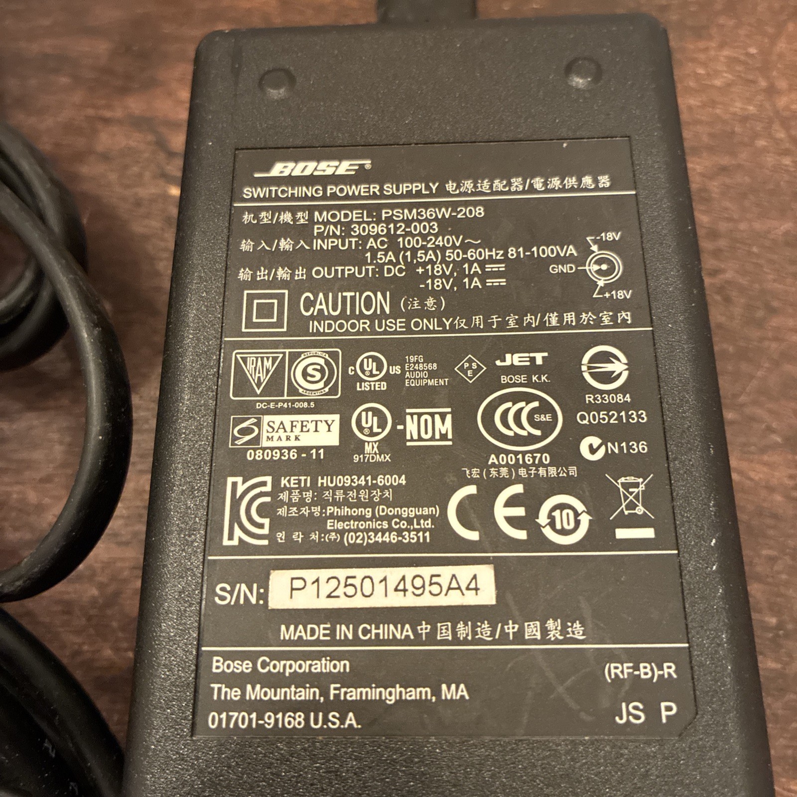 Genuine Bose Sounddock Power Supply PSM36W-208 18V Round Plug