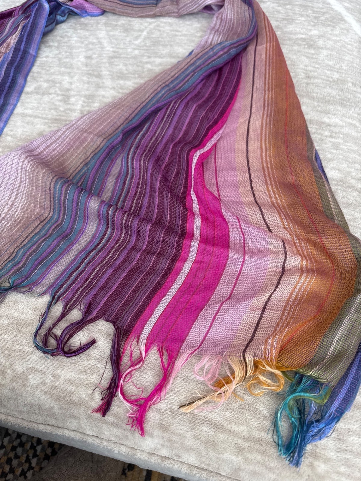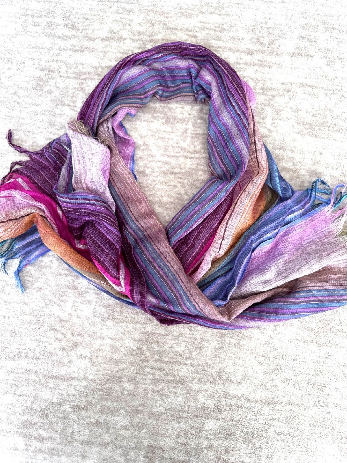 Purple Blue Stripe Boho Woven Artisan Rectangle Scarf