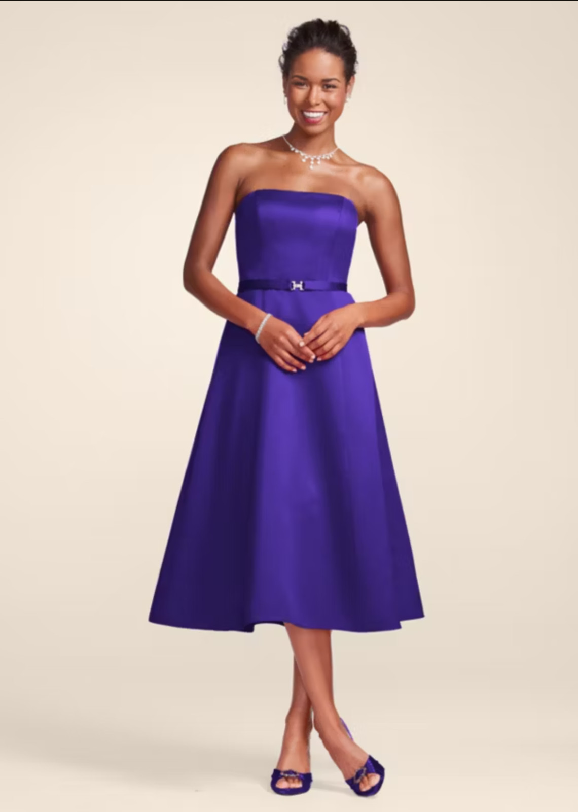 как выглядит Rich Deep Plum Strapless Satin A Line Cocktail Formal Tea Length Dress Medium фото