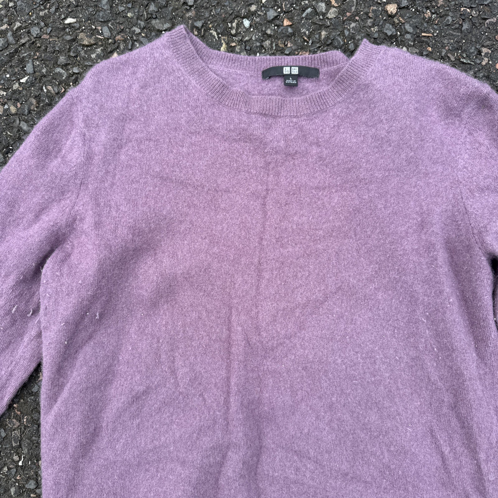 как выглядит Uniqlo Jumper Size L Ladies 100 Cashmere Heather Purple фото