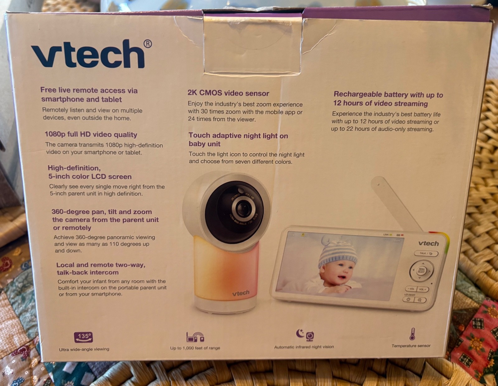 как выглядит VTech 5" 1080p Smart WiFi Remote Access 360 Degree Pan Tilt Video Baby Monitor фото