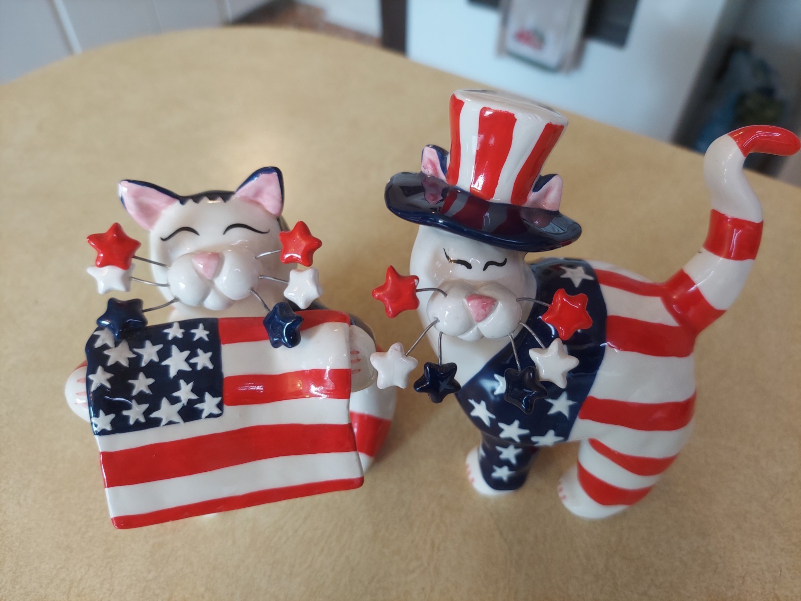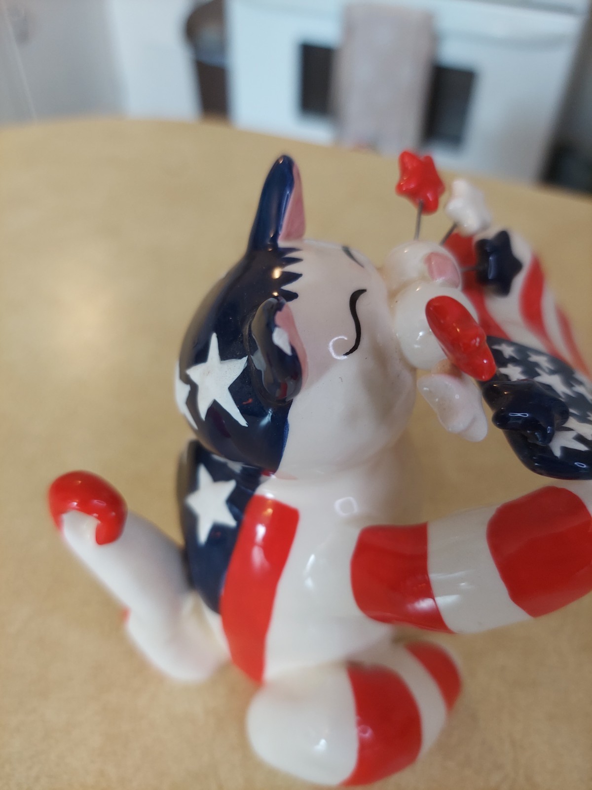 • Vintage Amy Lacombe WhimsiClay Cats Lot of 2 Annaco Creations PATRIOTIC 2001
