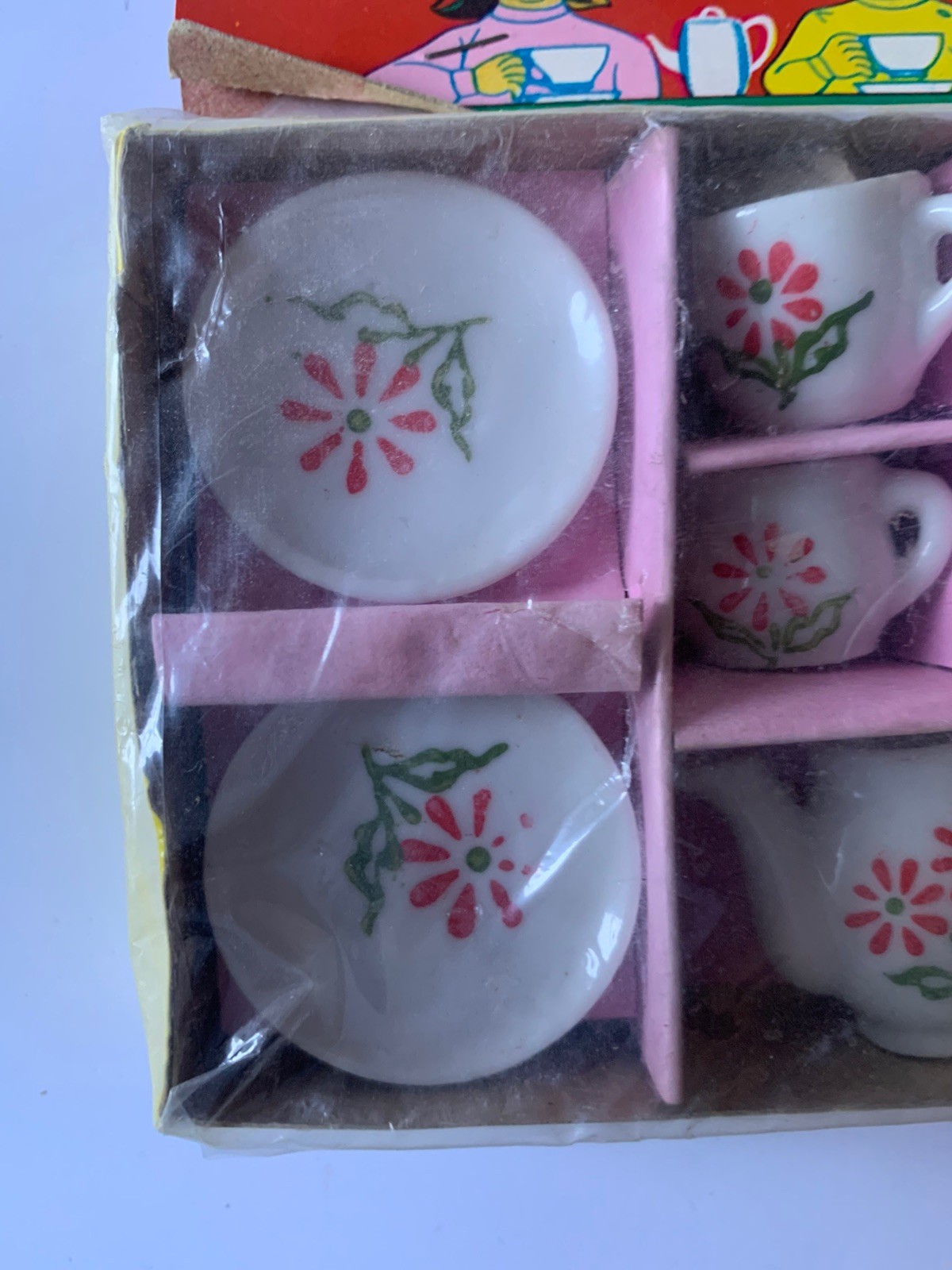 Vintage Miniature Toy Porcelain Tea Set Child Size Made In Japan Open Box