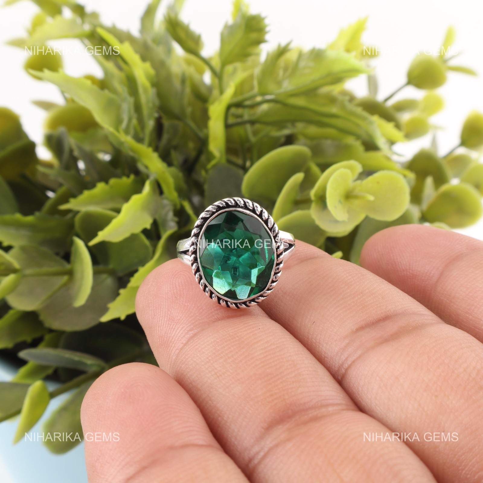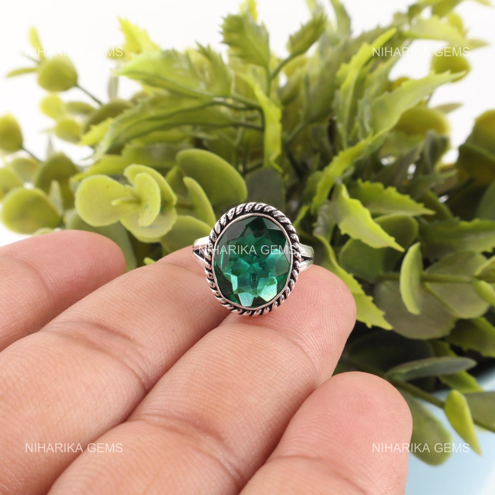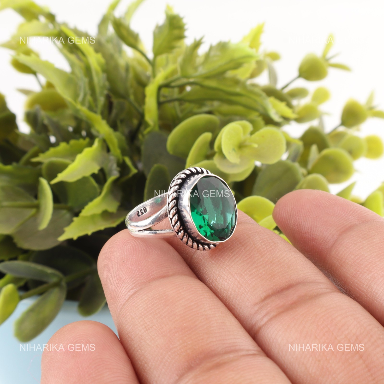 925 Sterling Silver Natural Green Emerald Promise Wedding Solitaire Ring Jewelry