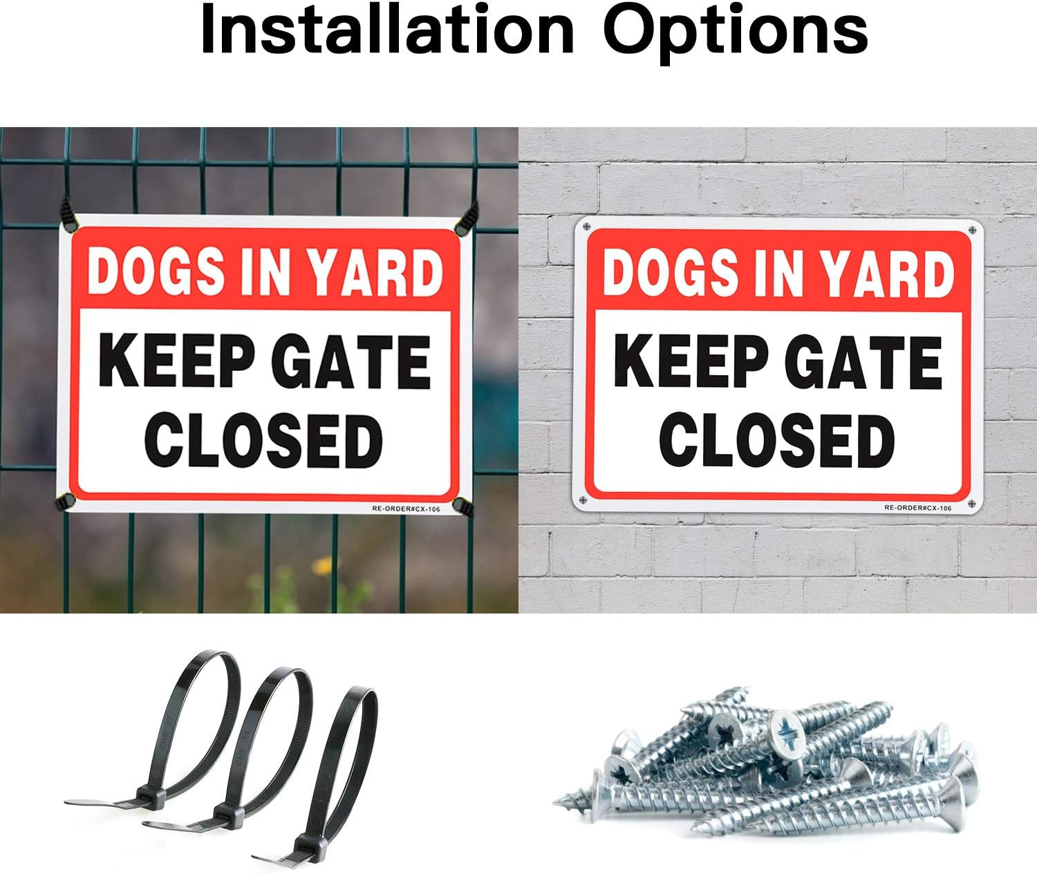 Keep Gate Closed, Dogs in Yard Sign 2 Pack, 10 x 7 .40 Rust Free Heavy Duty...