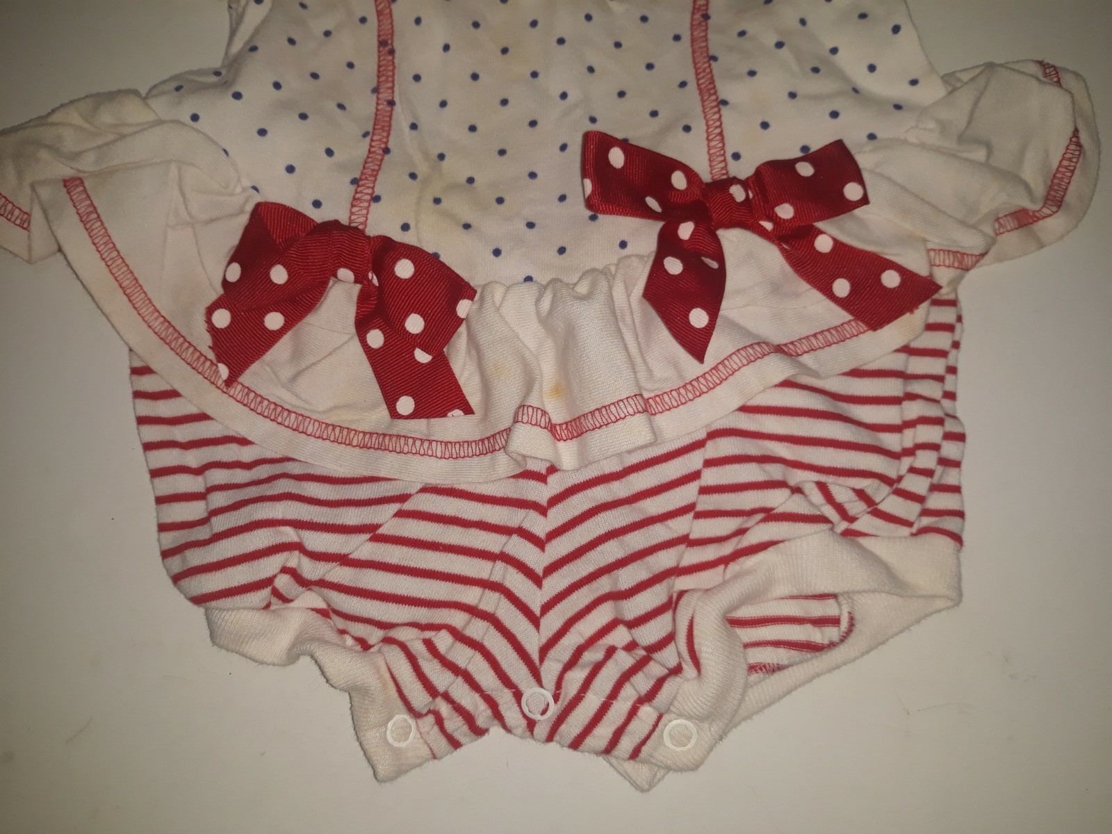 Vintage Buster Brown Girls One Piece Polka Dot with Bows 12 Months