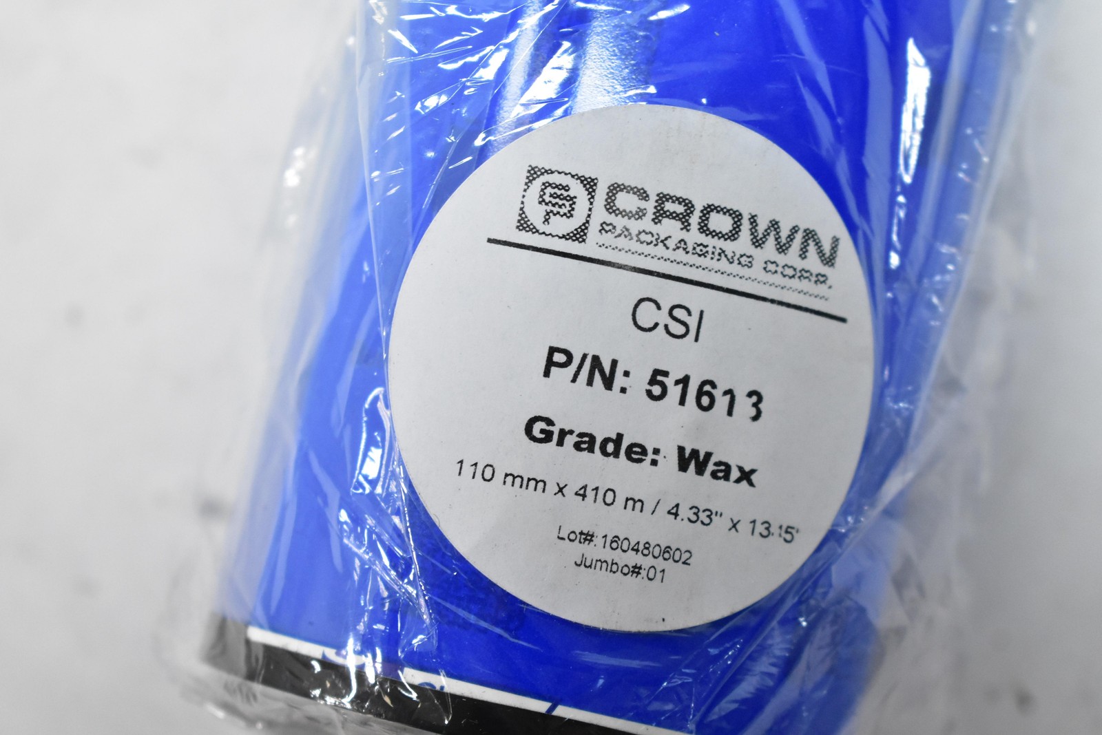 Crown Packaging CSI 51613 Wax Thermal Ribbon 110mm X 410m Lot 10 Cyan Rolls