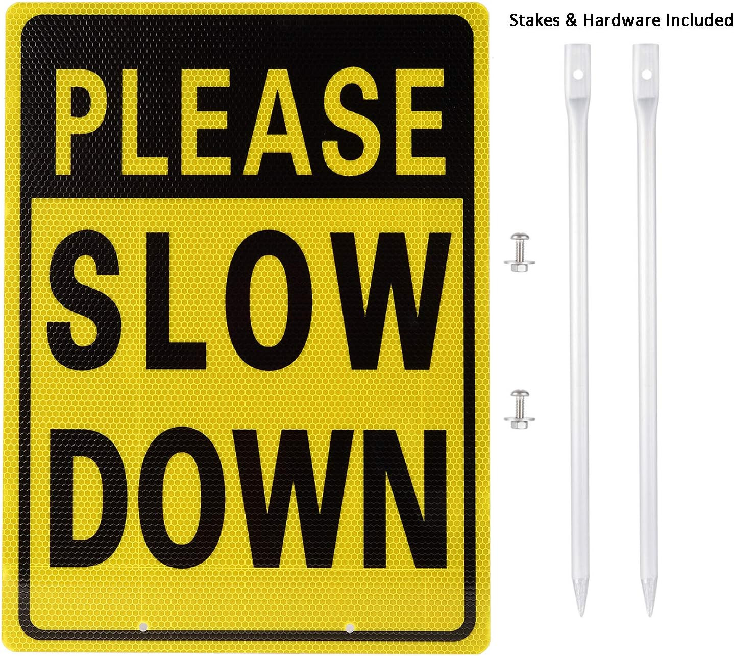 Please Slow down Sign, 16 Inch X 12 Inch/28 Inch High, Double Sided Aluminum Ref