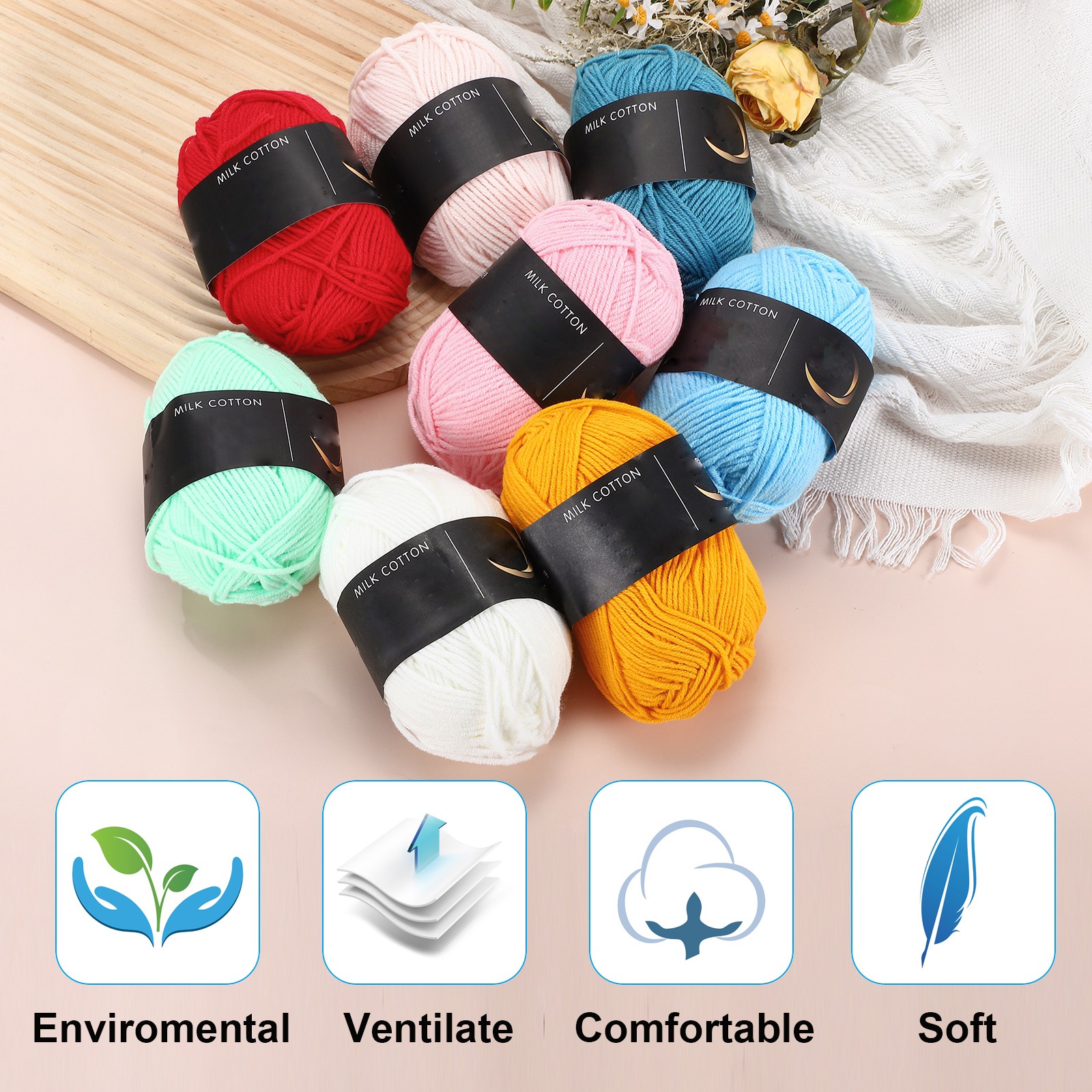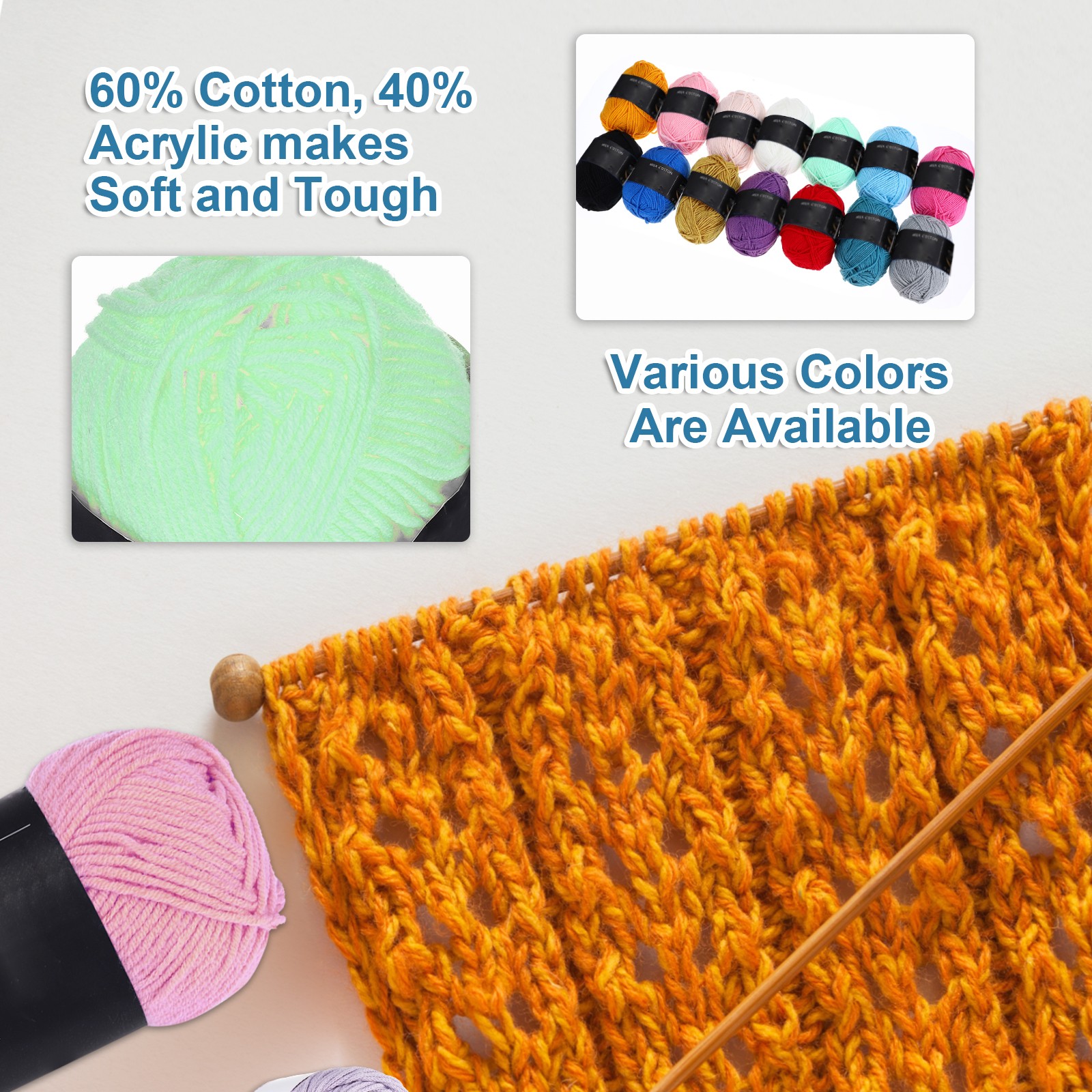 1Pcs Cotton Yarn Knitting Yarn Crochet Yarn 87.5Yard x 2.5mm, Water Green