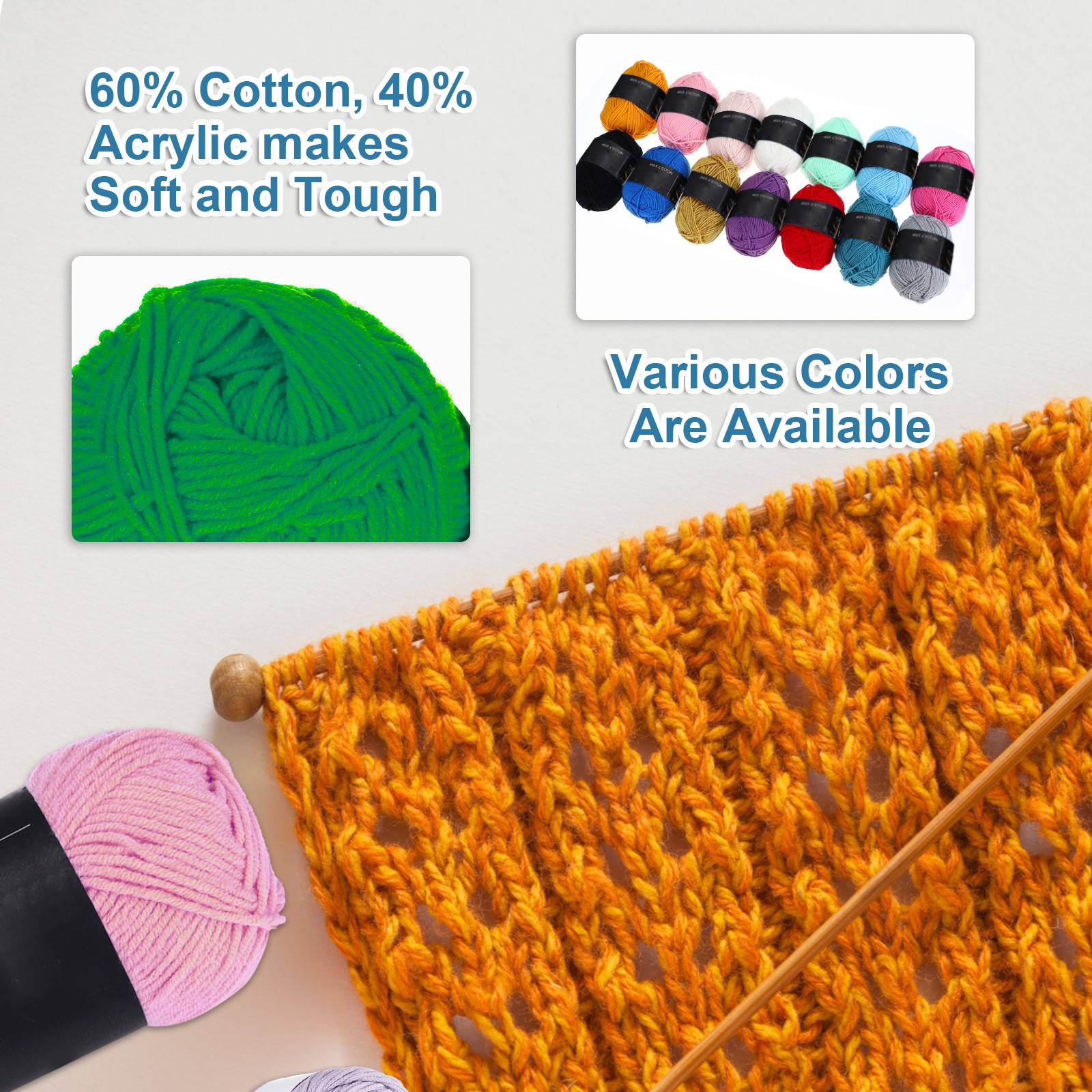 3Pcs Cotton Yarn Knitting Yarn Crochet Yarn 87.5Yard x 2.5mm, Bright Green