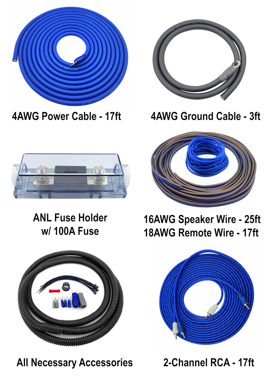 4 Gauge Complete CCA Copper 1200 Watt Amplifier Wiring Kit 4 AWG 4