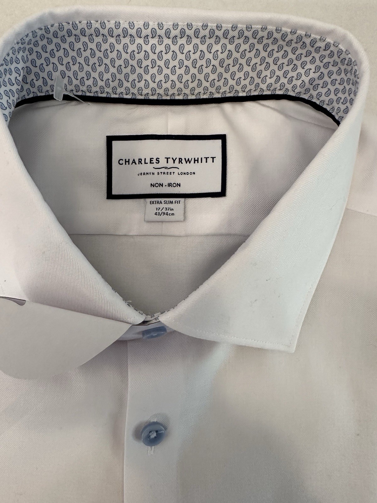 как выглядит Charles Trywhitt Extra Slim Fit Non Iron Twill Dress Shirt White 17/37 Inch фото