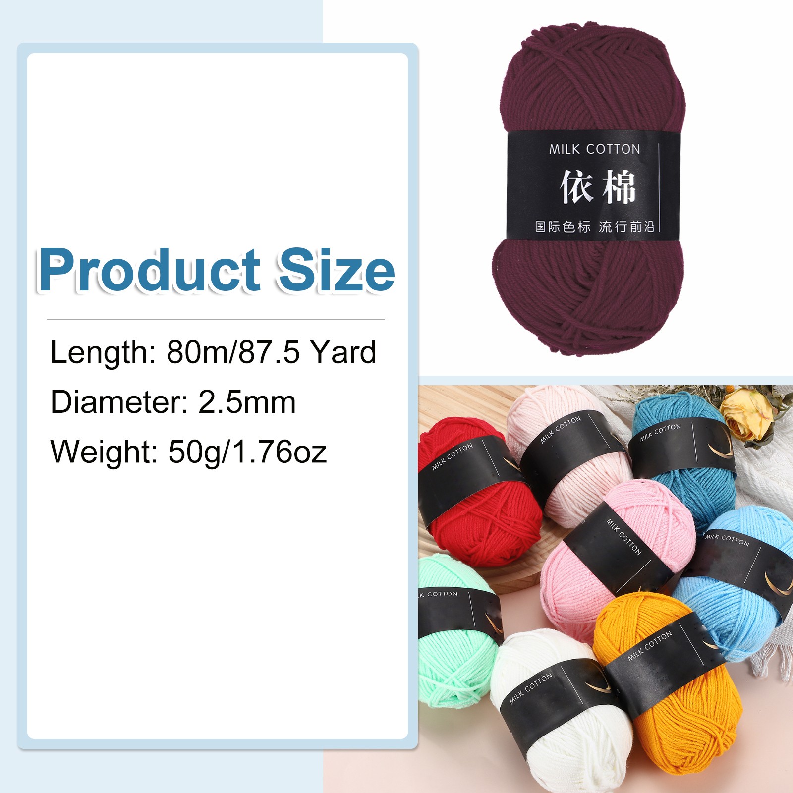 1Pcs Cotton Yarn Knitting Yarn Crochet Yarn 87.5Yard x 2.5mm, Wine Red
