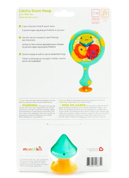 Munchkin Catch Score Hoop Basketball Bath Toy,Hand-Eye Coordination 2in1 New Box