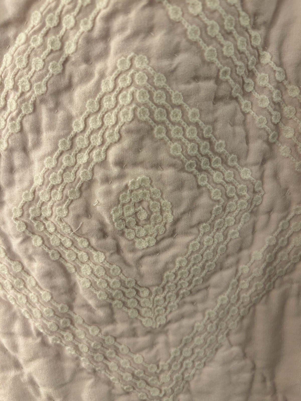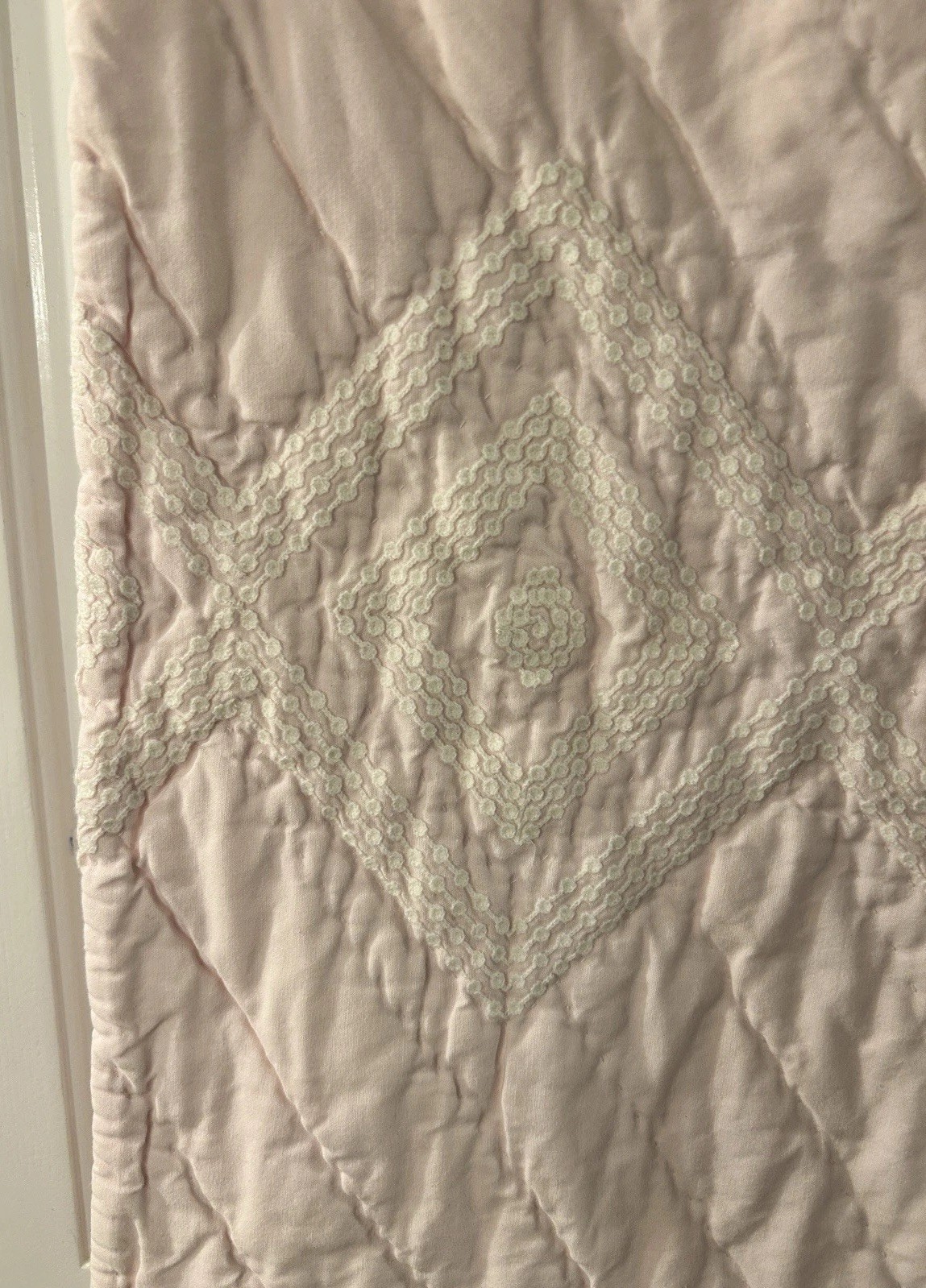 как выглядит Pottery Barn Kids Light Pink Embroidered Quilted Cotton Crib Quilt 36 x 50 EUC фото