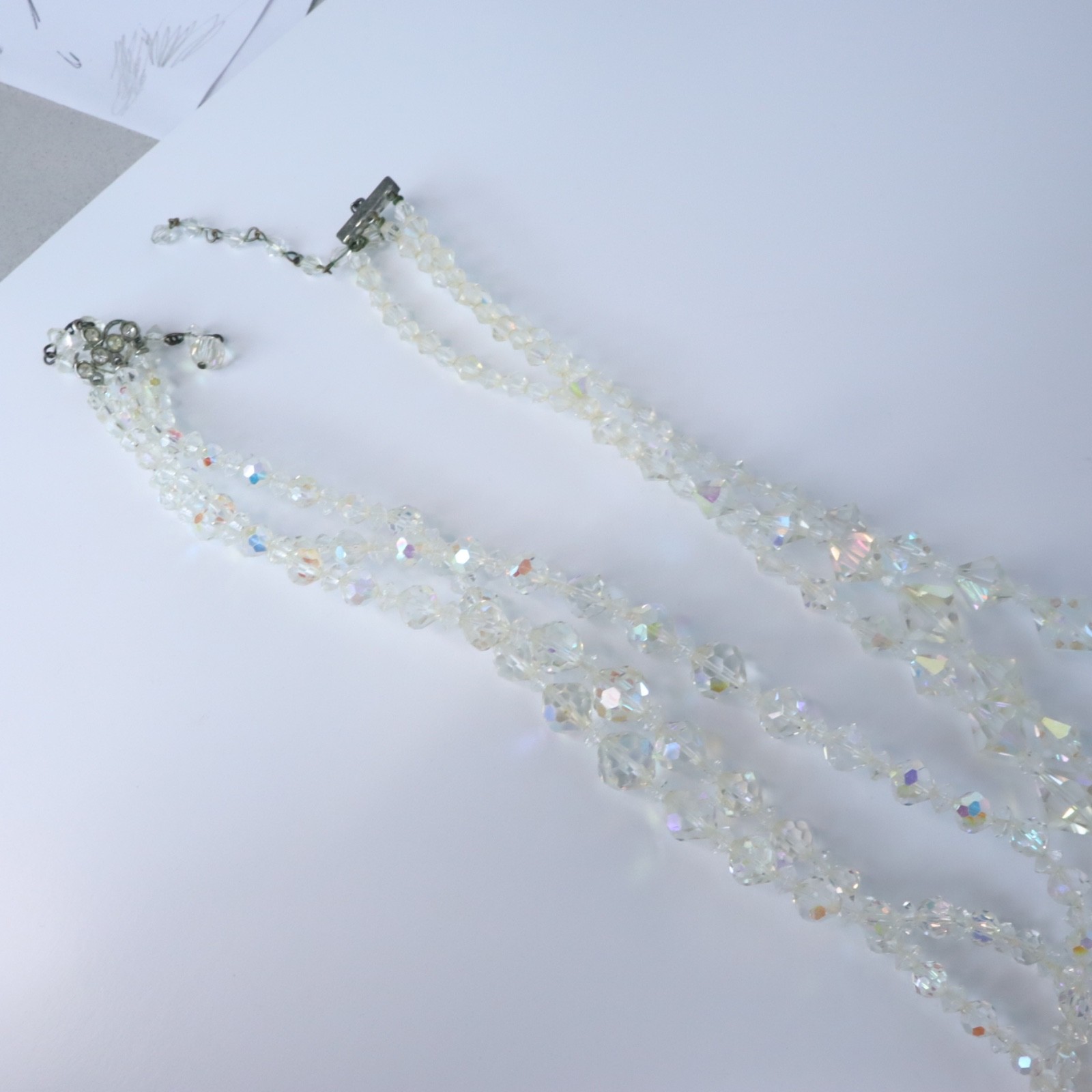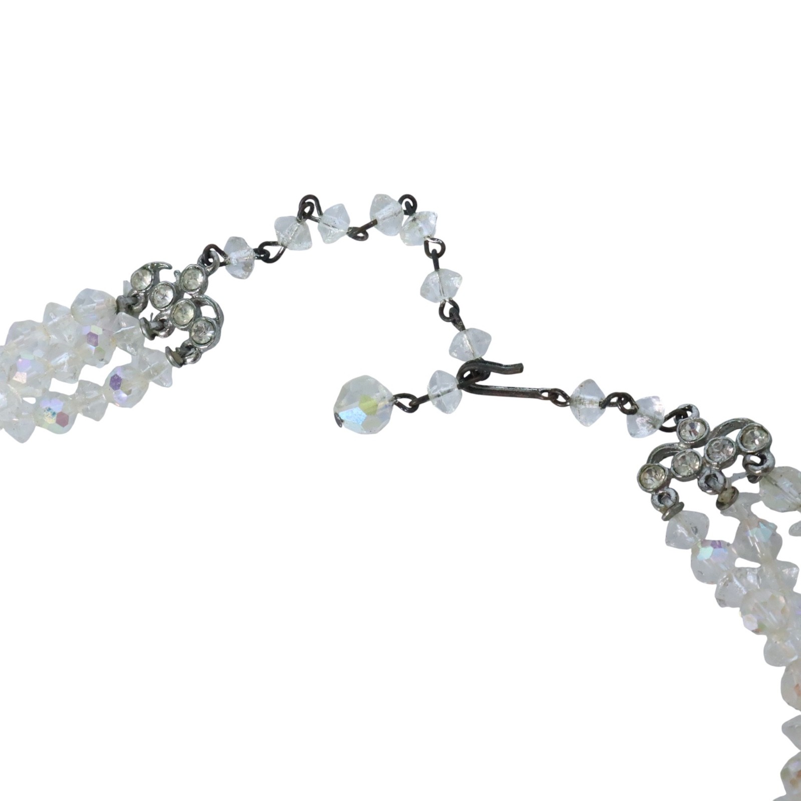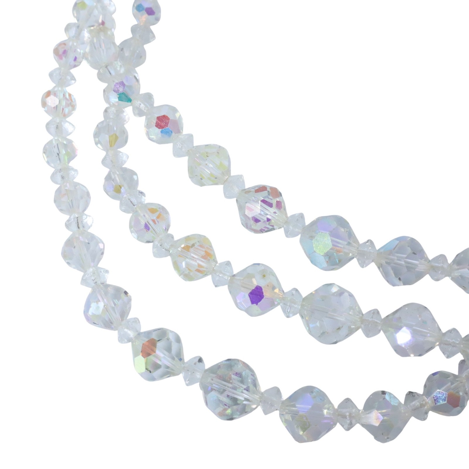 Vintage Aurora Borealis Crystal Multi Faceted Triple Strand Choker Necklace 15