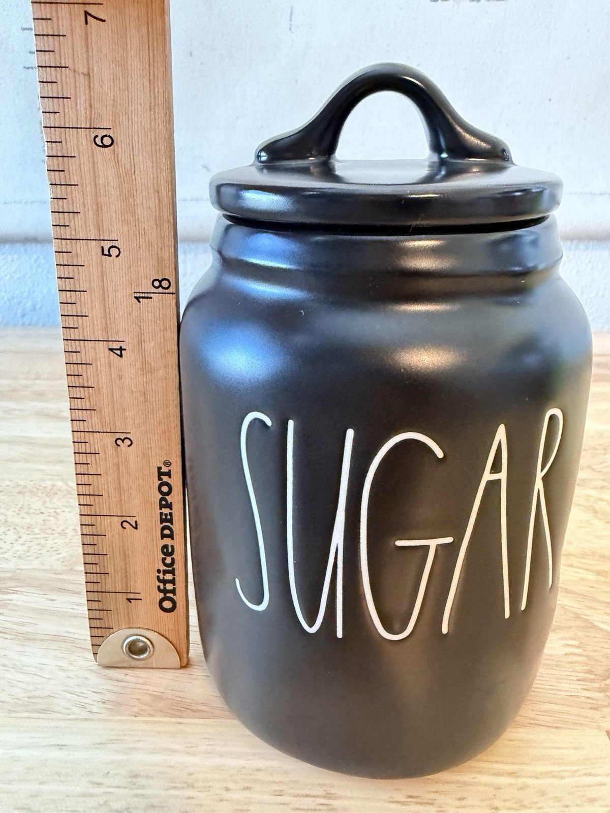 как выглядит Rae Dunn Artisan Collection Black Small Sugar Jar with Flat Sealing Lid Ceramic фото