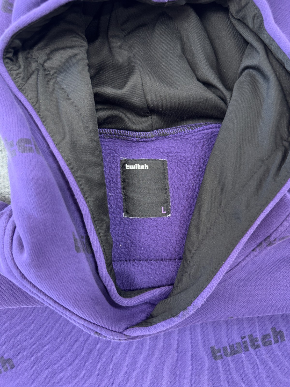 как выглядит Twitch Allover Logo Purple Pullover Hoodie Size Large Streaming фото