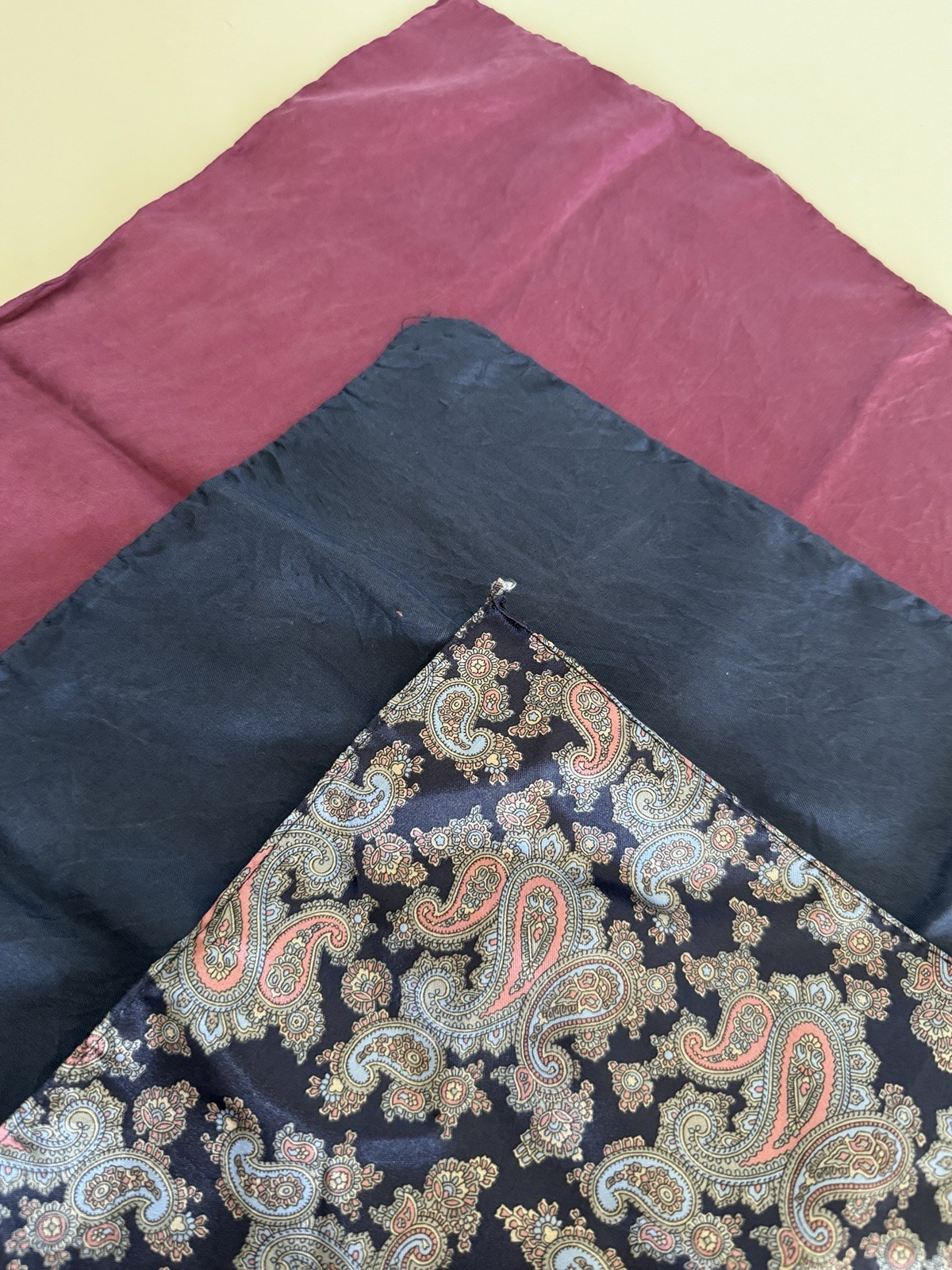 Lot of 3- VTG Silk Handkerchief Lot Paisley Navy/Purple/Blue Luxe Pocket Squares
