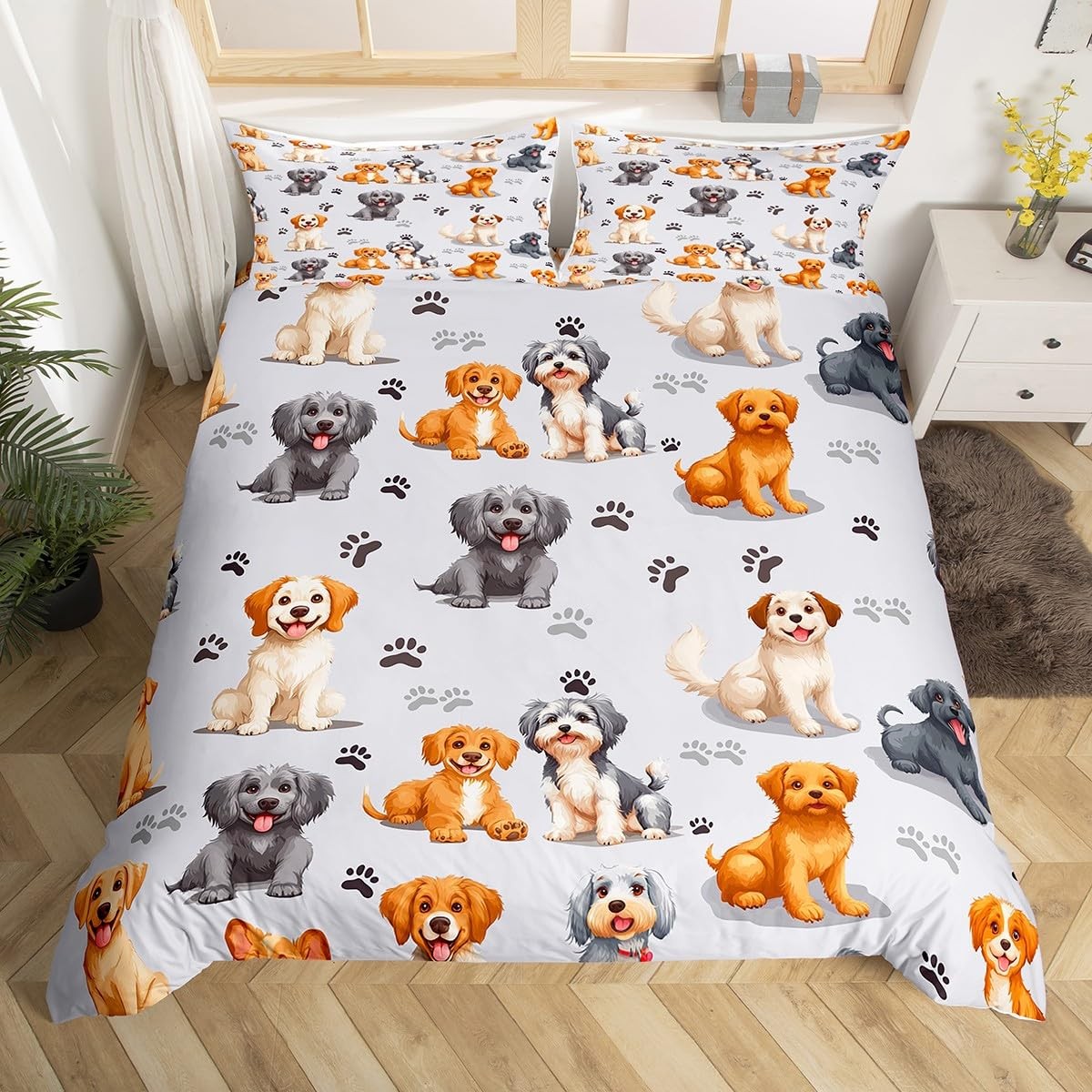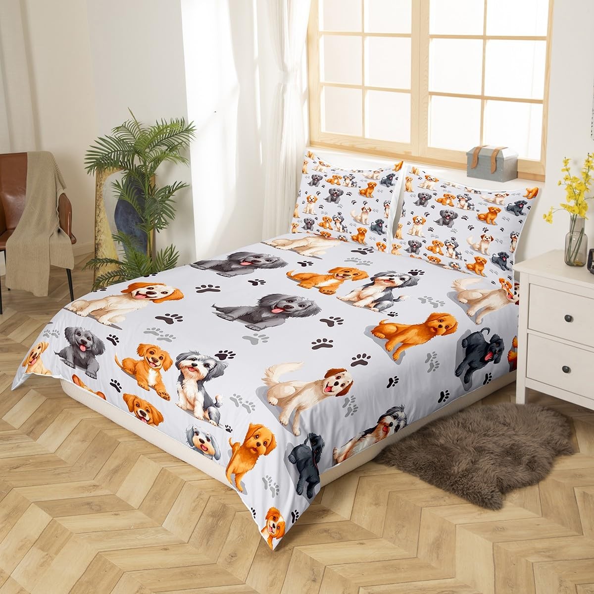 как выглядит Kids Cute Dog Bedding Set - Toddler Cartoon Comforter Cover for Boys Girls Pe... фото