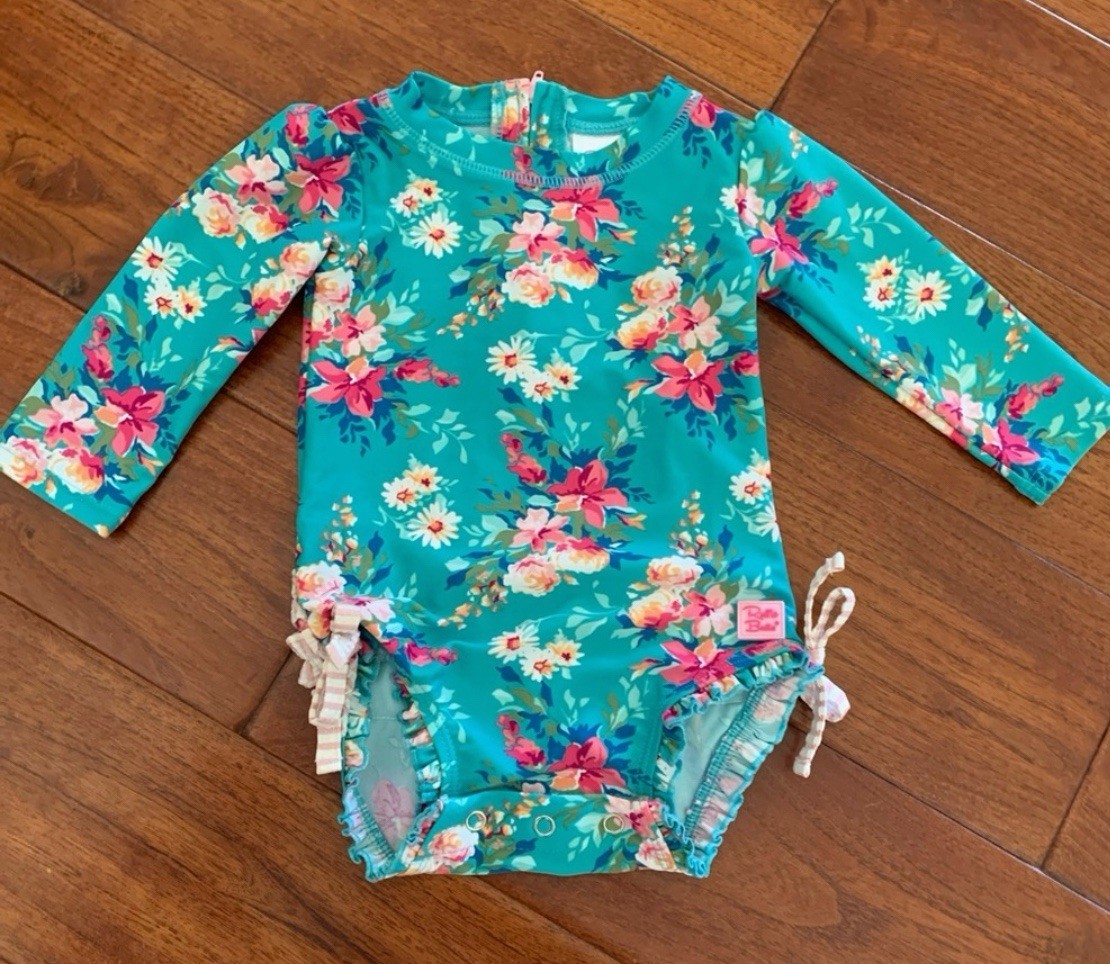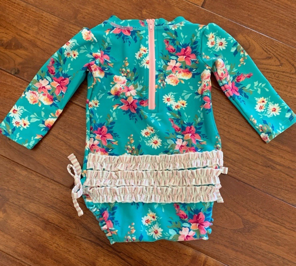 Ruffle Butts Fancy Me Floral Long Sleeve One Piece Swimsuit 6-12 Mos Rash Guard