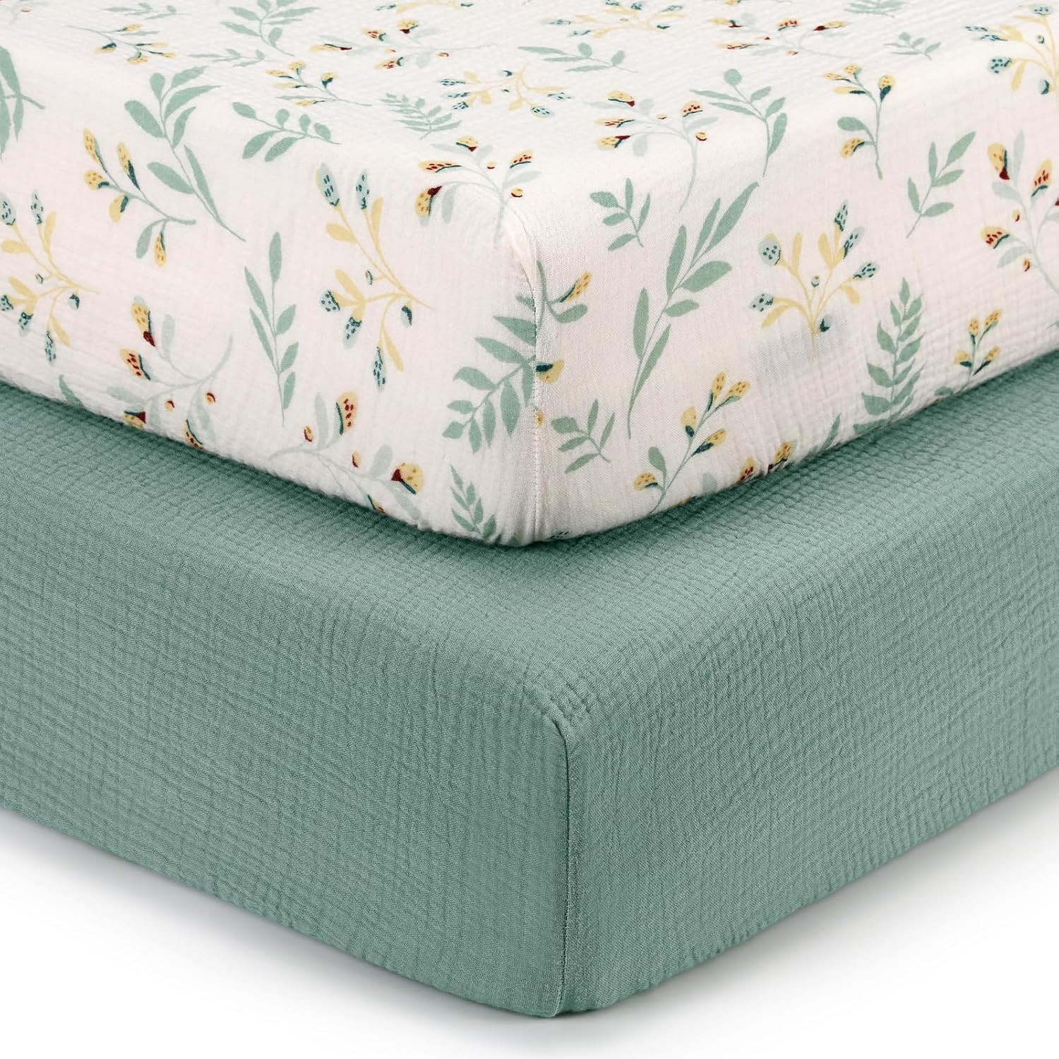Muslin Crib Sheets for Girl Boy, Boho Neutral Soft Cotton Baby Sheet for 52''X28