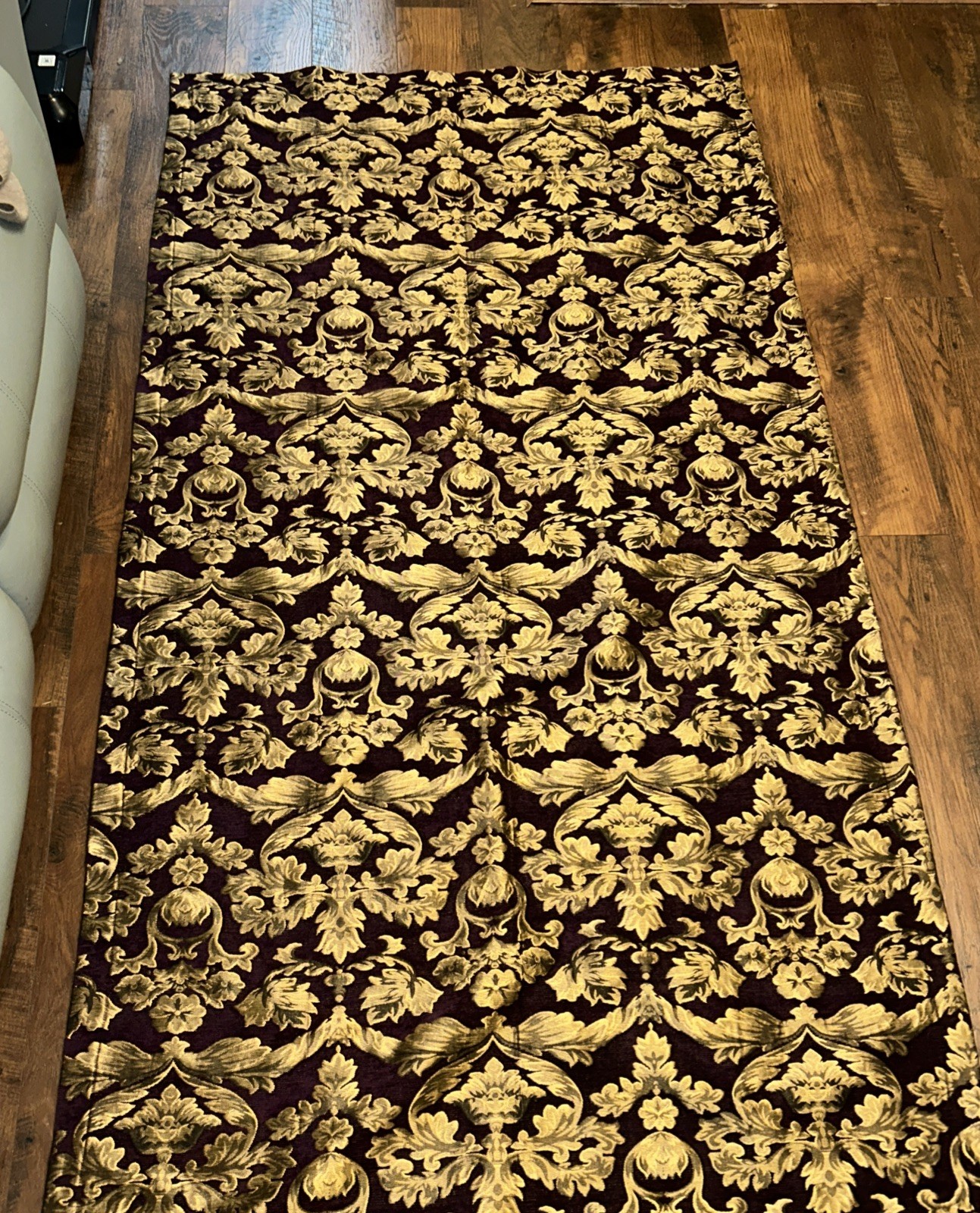 как выглядит Luxury Damask Curtain Panels Set of 2 Plum Purple Gold Jacquard 42x80 фото