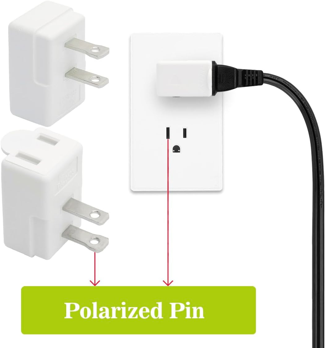 Polarized 2-Prong L Type Adapter, Horizontal Angled AC Adapter, NEMA 1-15P US...