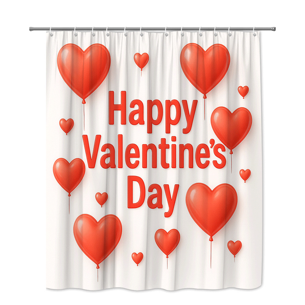 Happy Valentine's Day Shower Curtain with Red Hearts, Waterproof