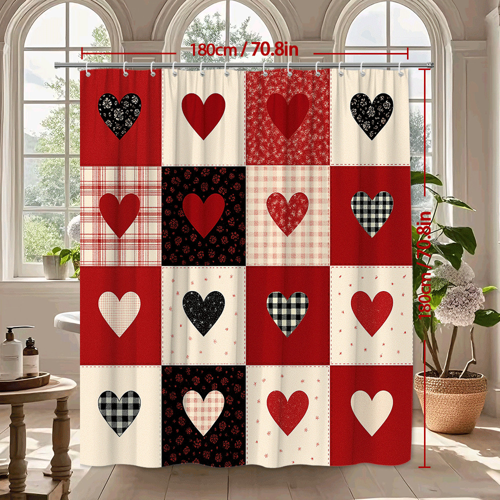 Red Heart Patchwork Shower Curtain - Cute Valentine's Decor