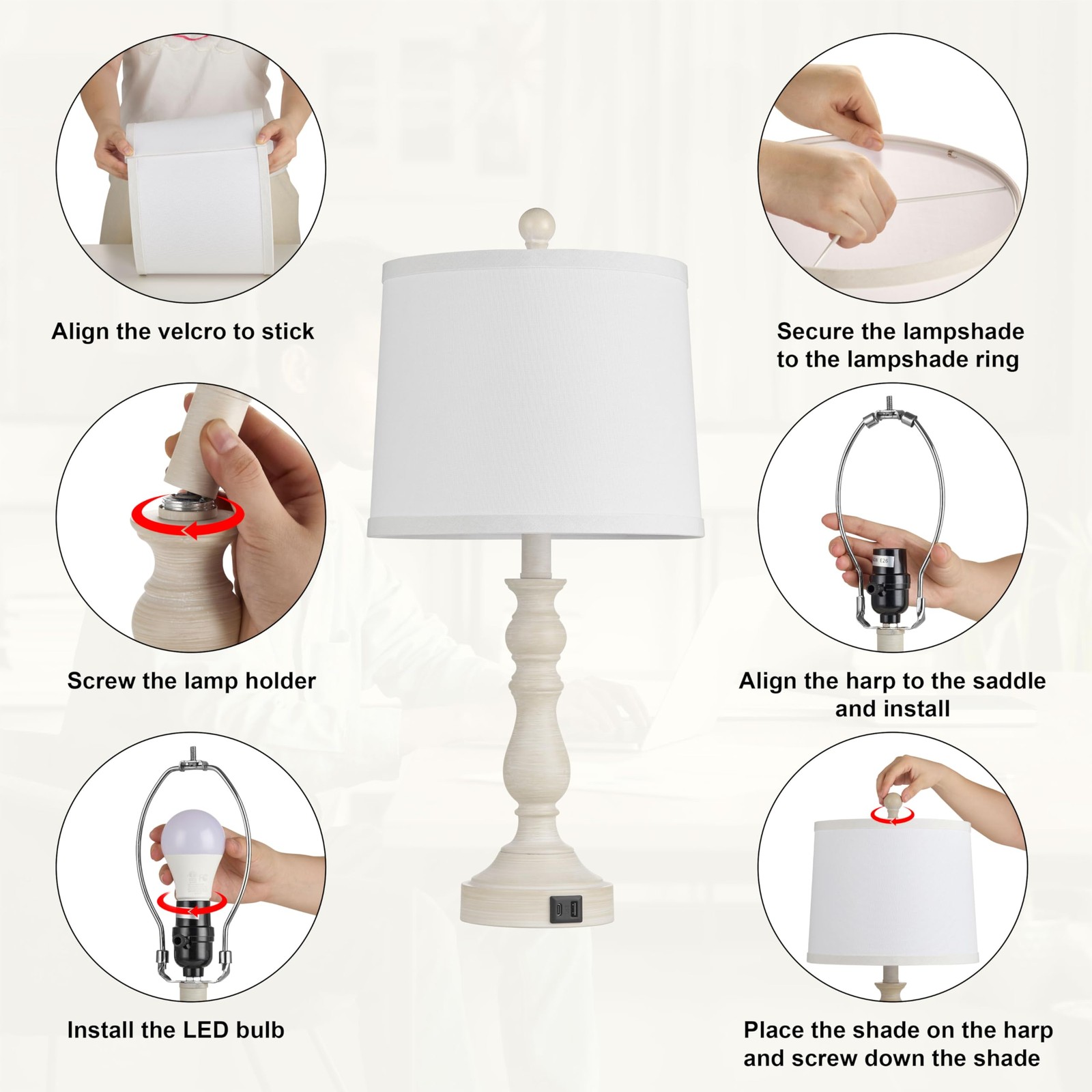 Included Components: Bulb, Shade, Lamp Base, Fixing Ring, Harp