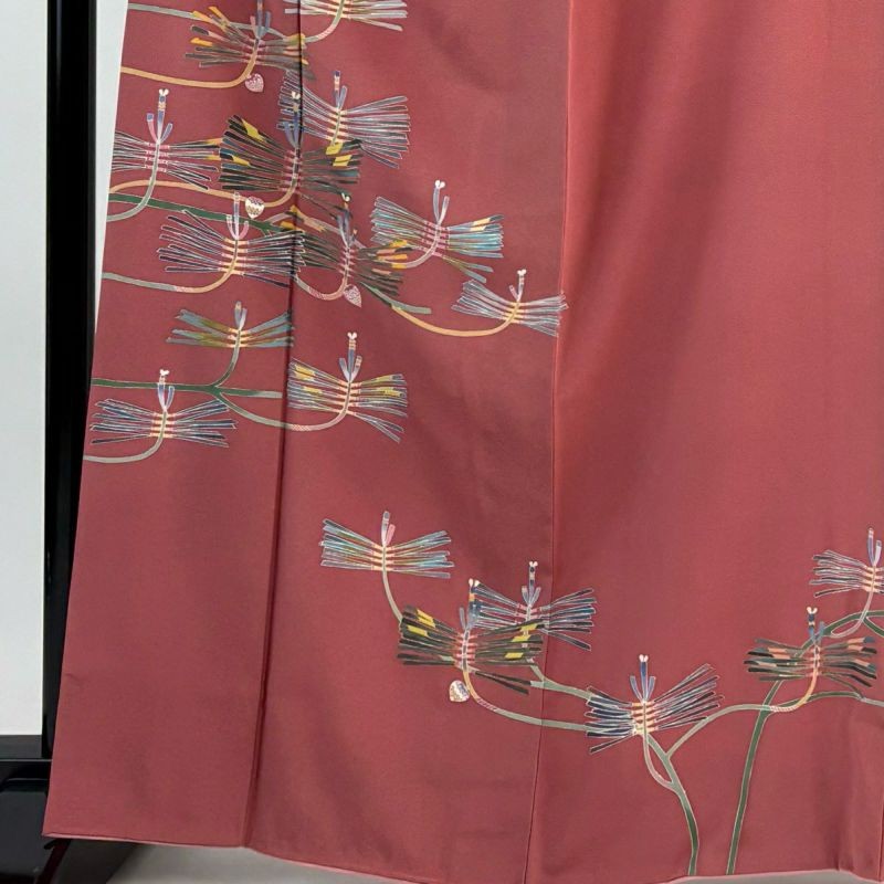 • JAPANESE KIMONO HOMONGI PINK BEIGE 165.5cm 5 ft 5 in PURE SILK BB8251