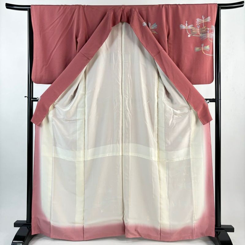 JAPANESE KIMONO HOMONGI PINK BEIGE 165.5cm 5 ft 5 in PURE SILK BB8251