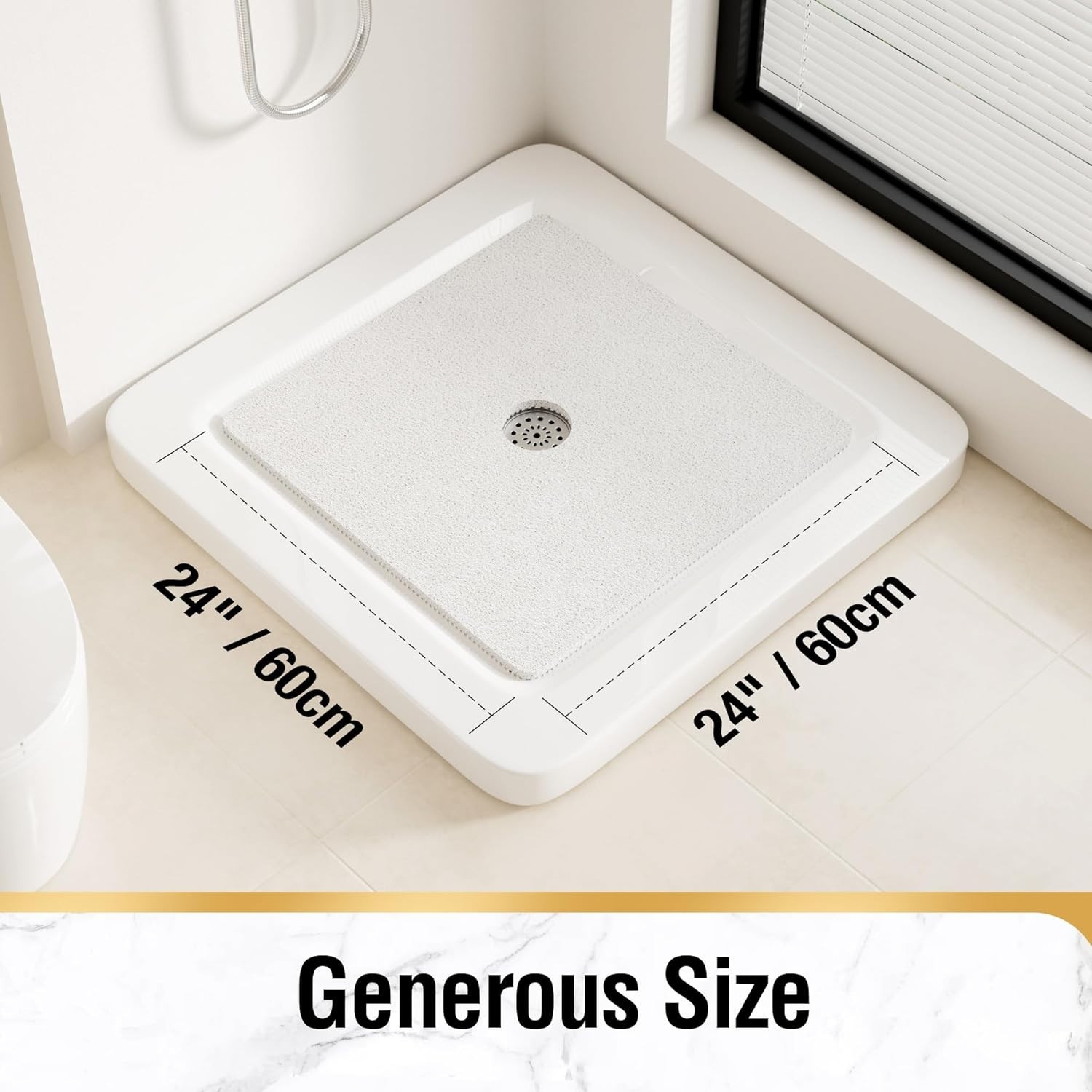 HITSLAM Square Shower Mat 24x24 Non Slip PVC Loofah Bath Mat White Drain Holes