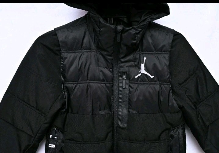 как выглядит Jordan Air Youth Boys Black Puffer Hoodie Jacket Size Meduim Polyester фото