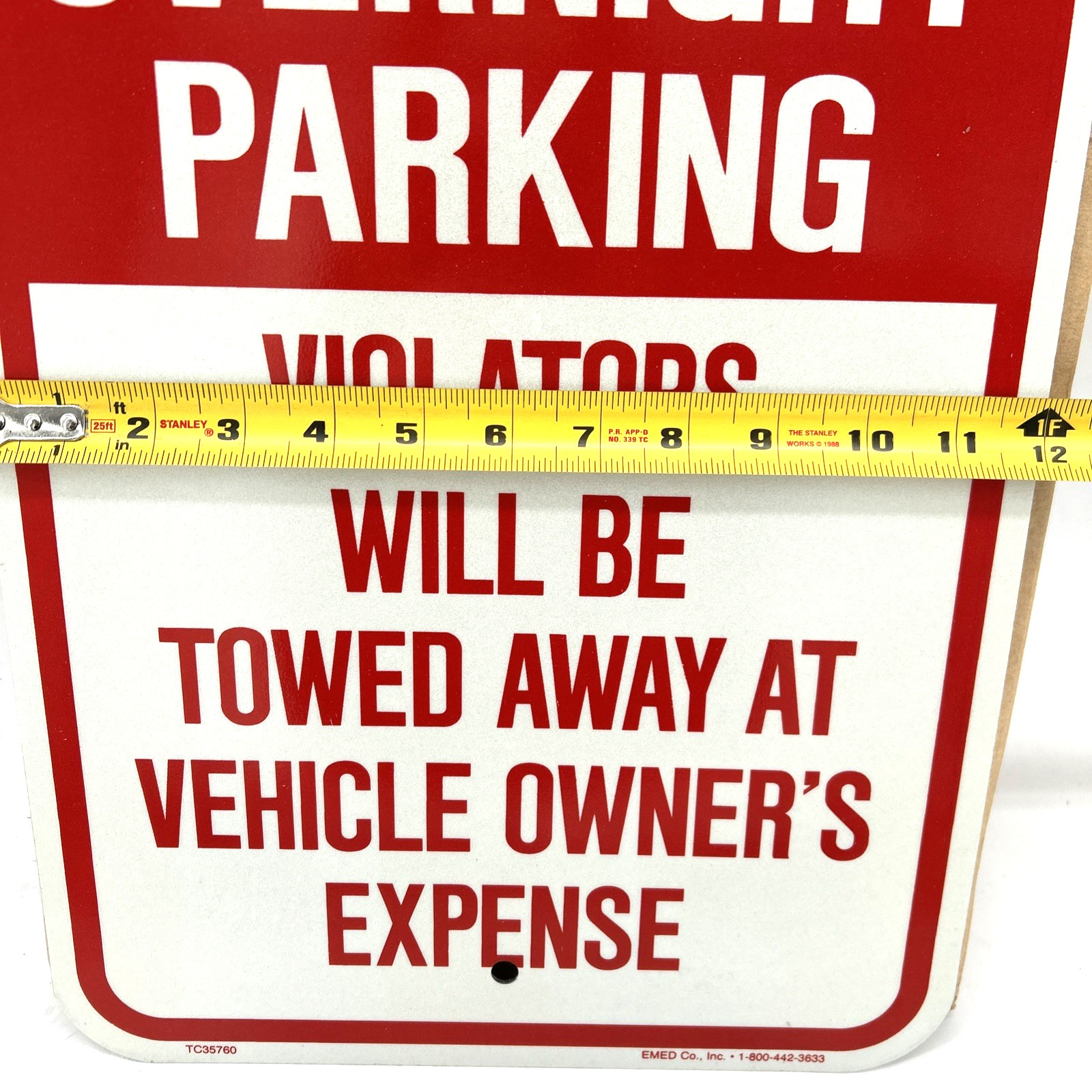 Особенности: No Overnight Parking Sign, Height 18 in, Width 12 in, Sign Materi