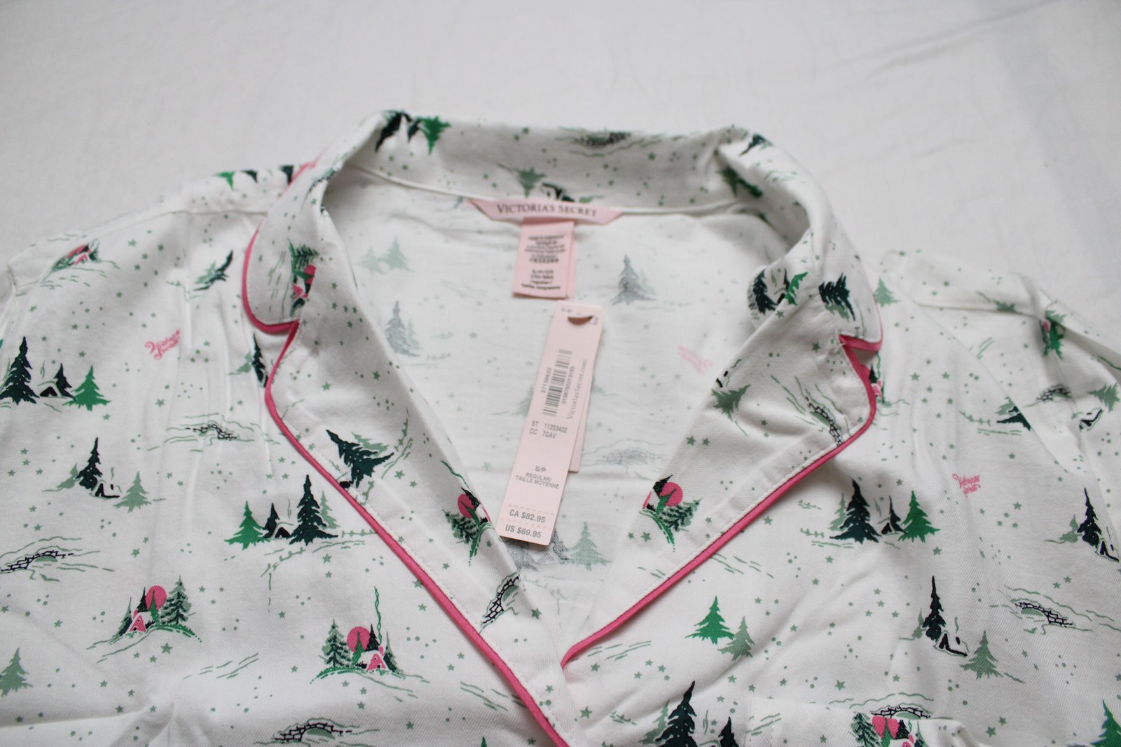 как выглядит Victorias Secret Womens Flannel Long Pajama Set EH6 White/Rose Small NWT фото