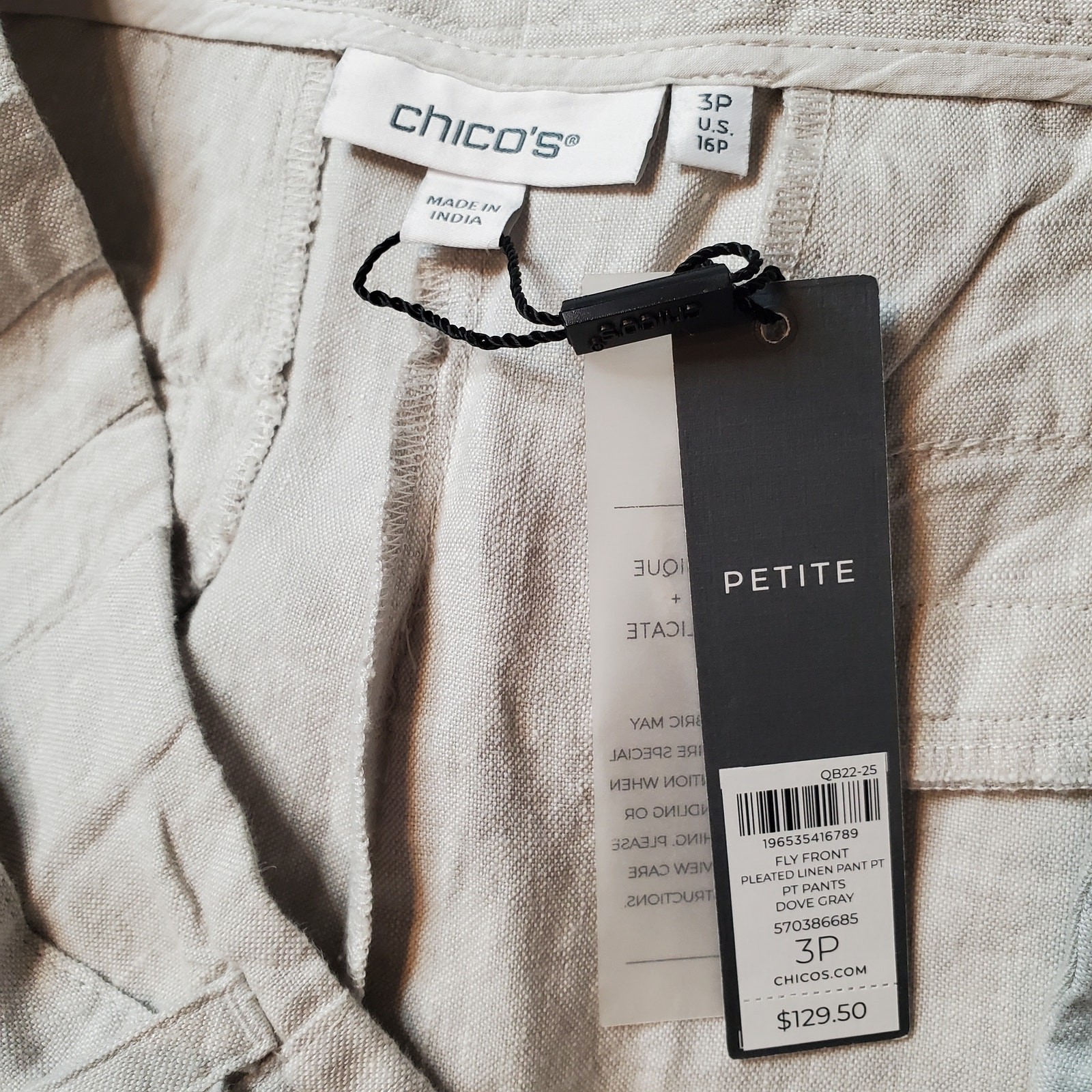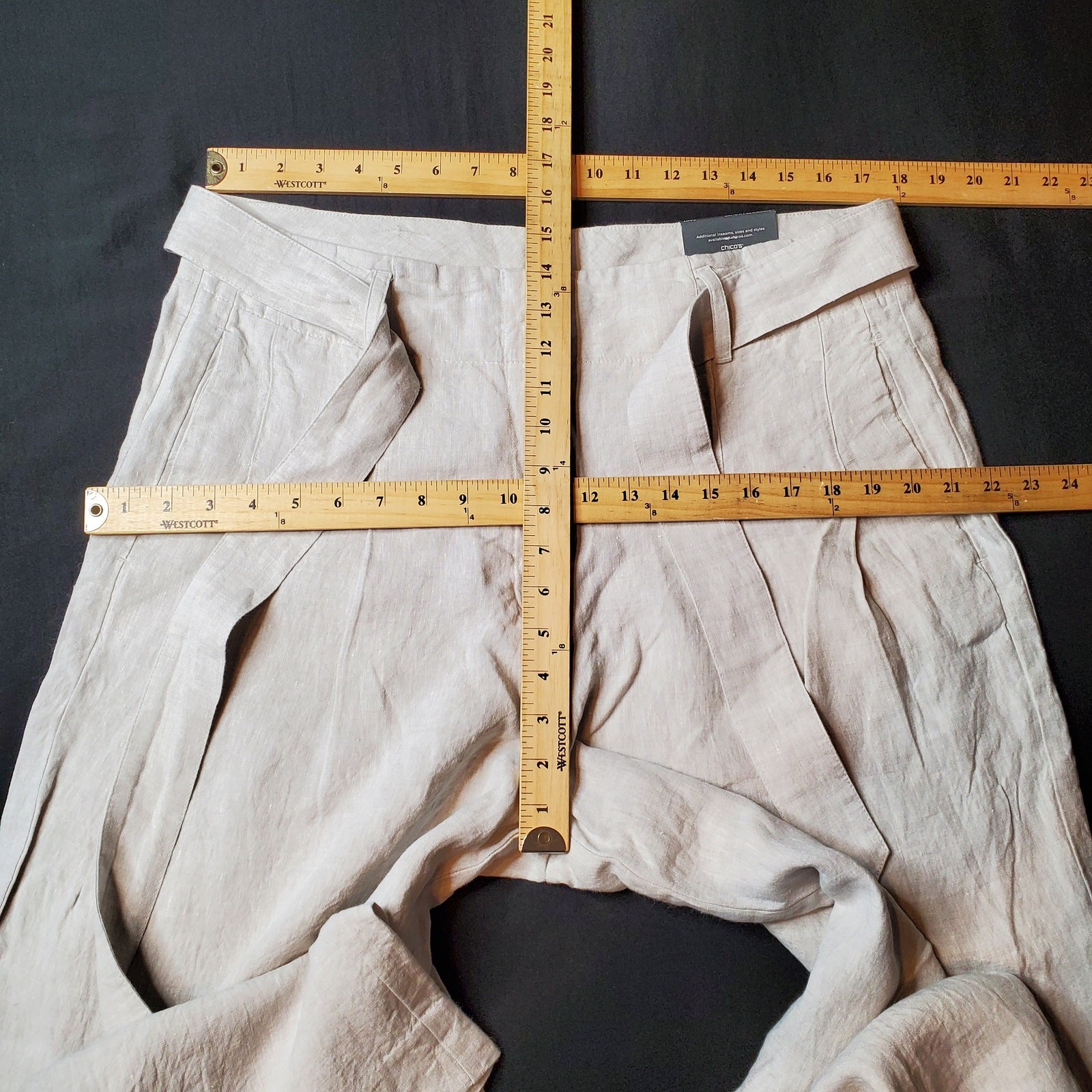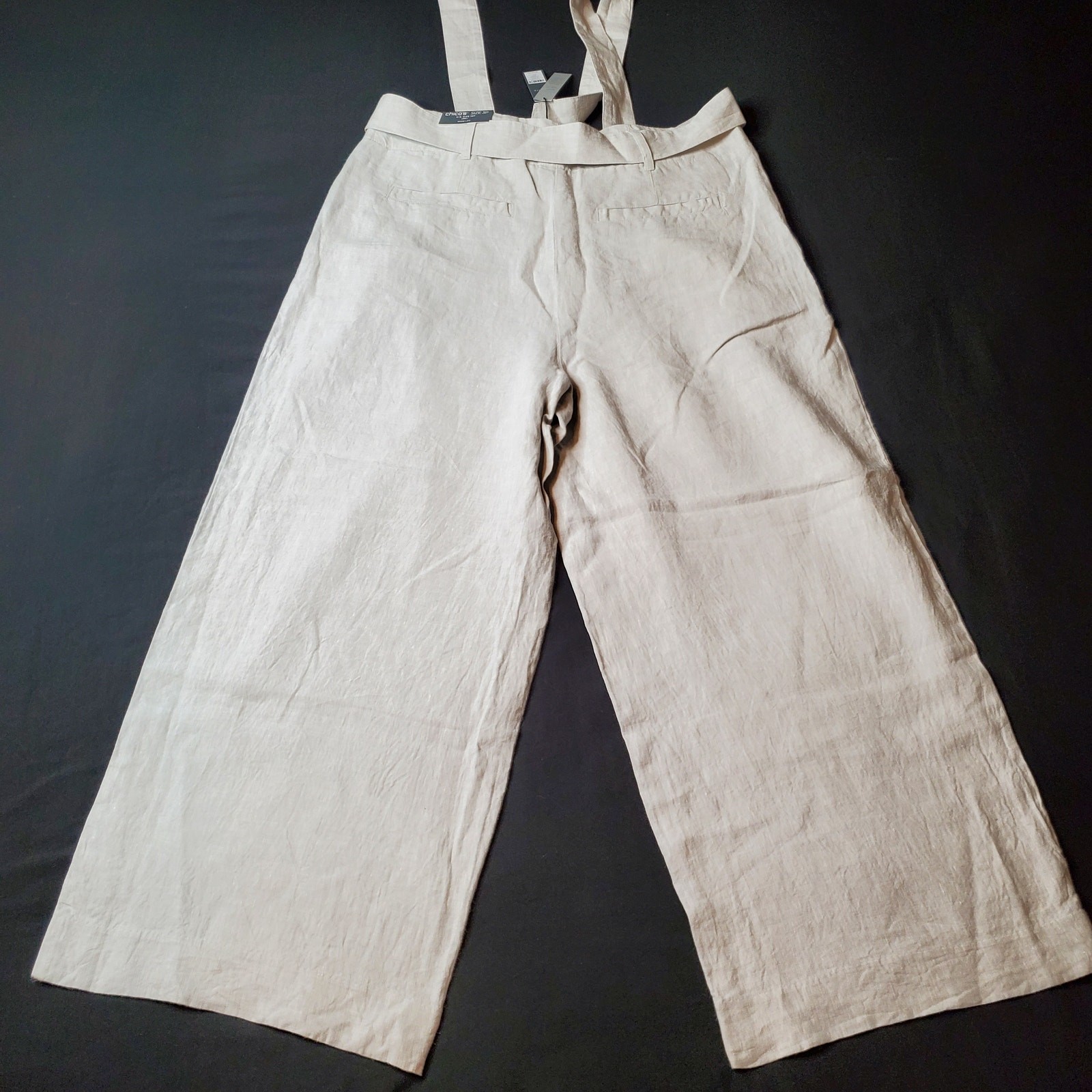 как выглядит Chicos Womens Size 3P US-16 NWT Pleated Belted Linen Pants Wide Leg Gray фото