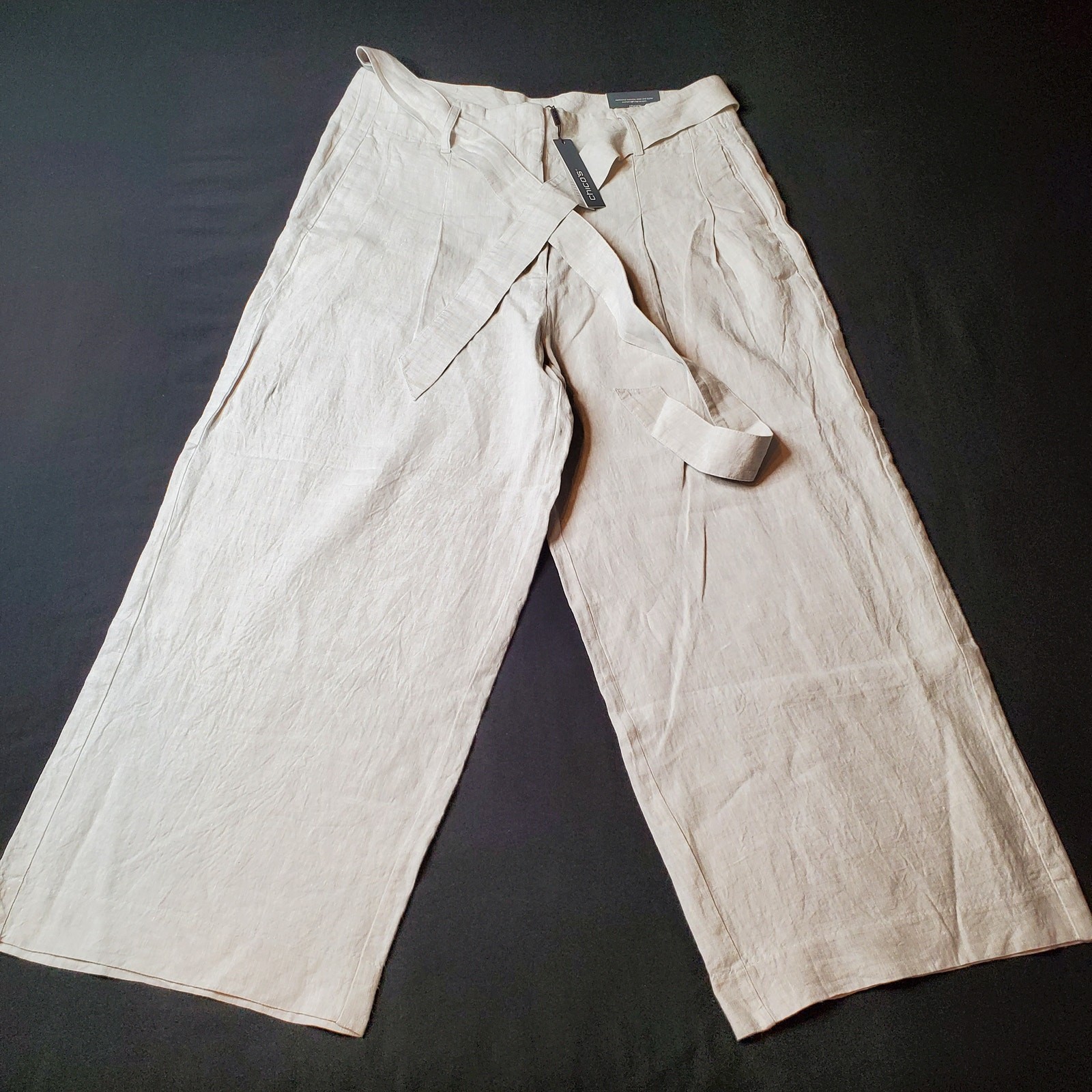 Chico's Womens Size 3P US-16 NWT Pleated Belted Linen Pants Wide Leg Gray