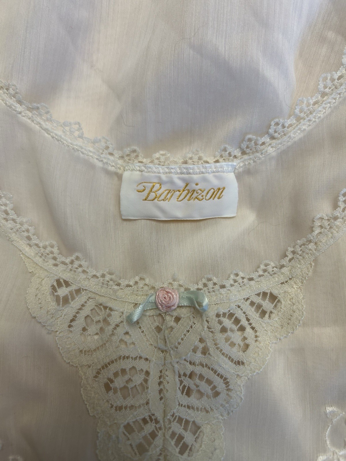 как выглядит VTG Barbizon Long Nightgown White With Lace Details Measures Medium Sleeveless фото