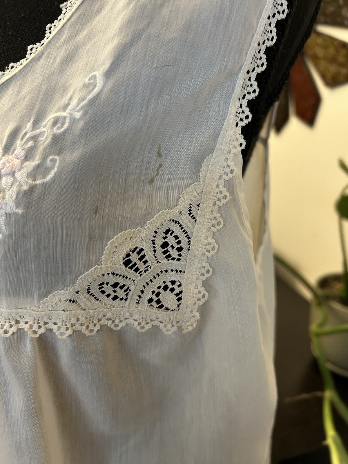 VTG Barbizon Long Nightgown White With Lace Details Measures Medium Sleeveless