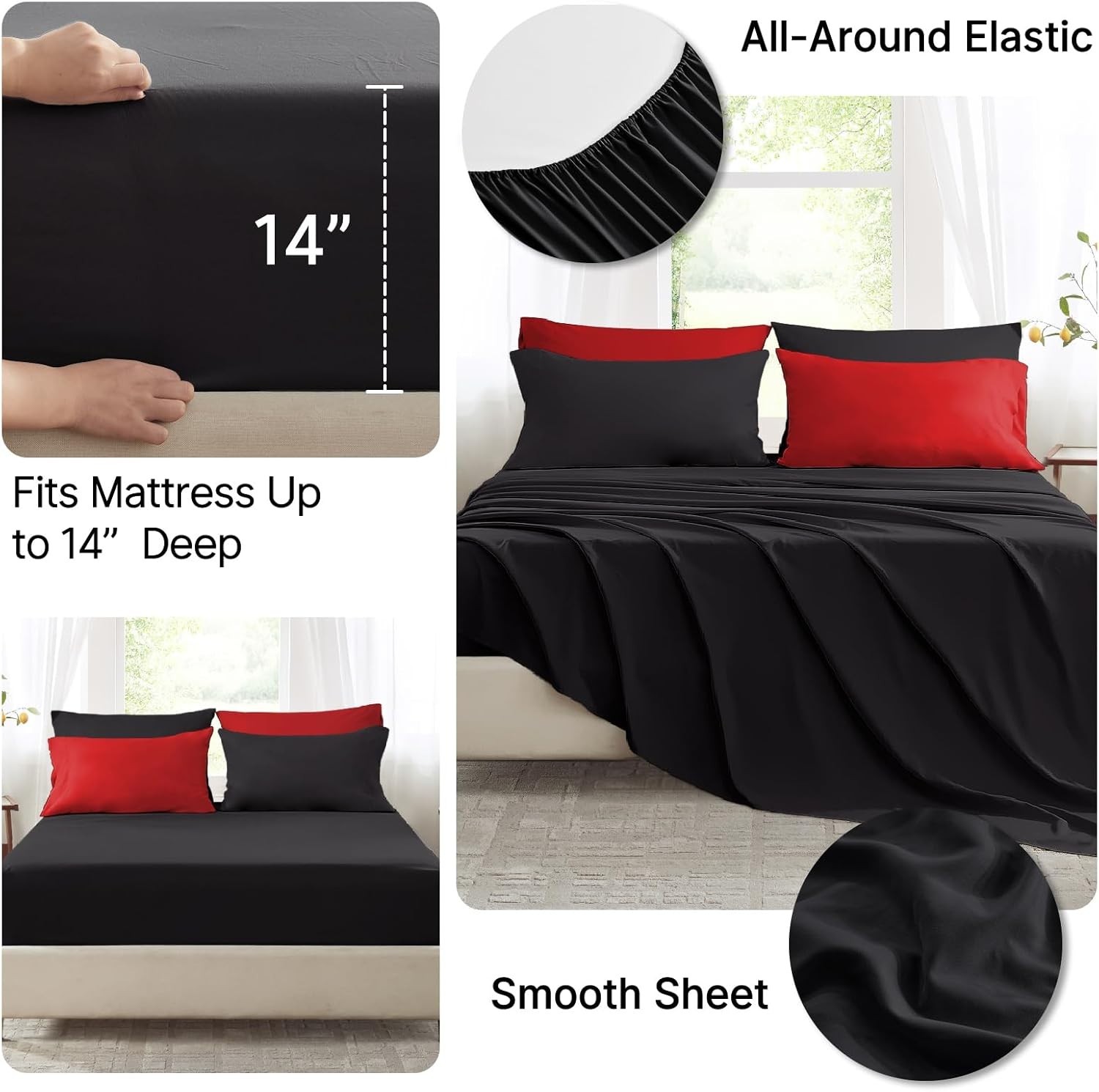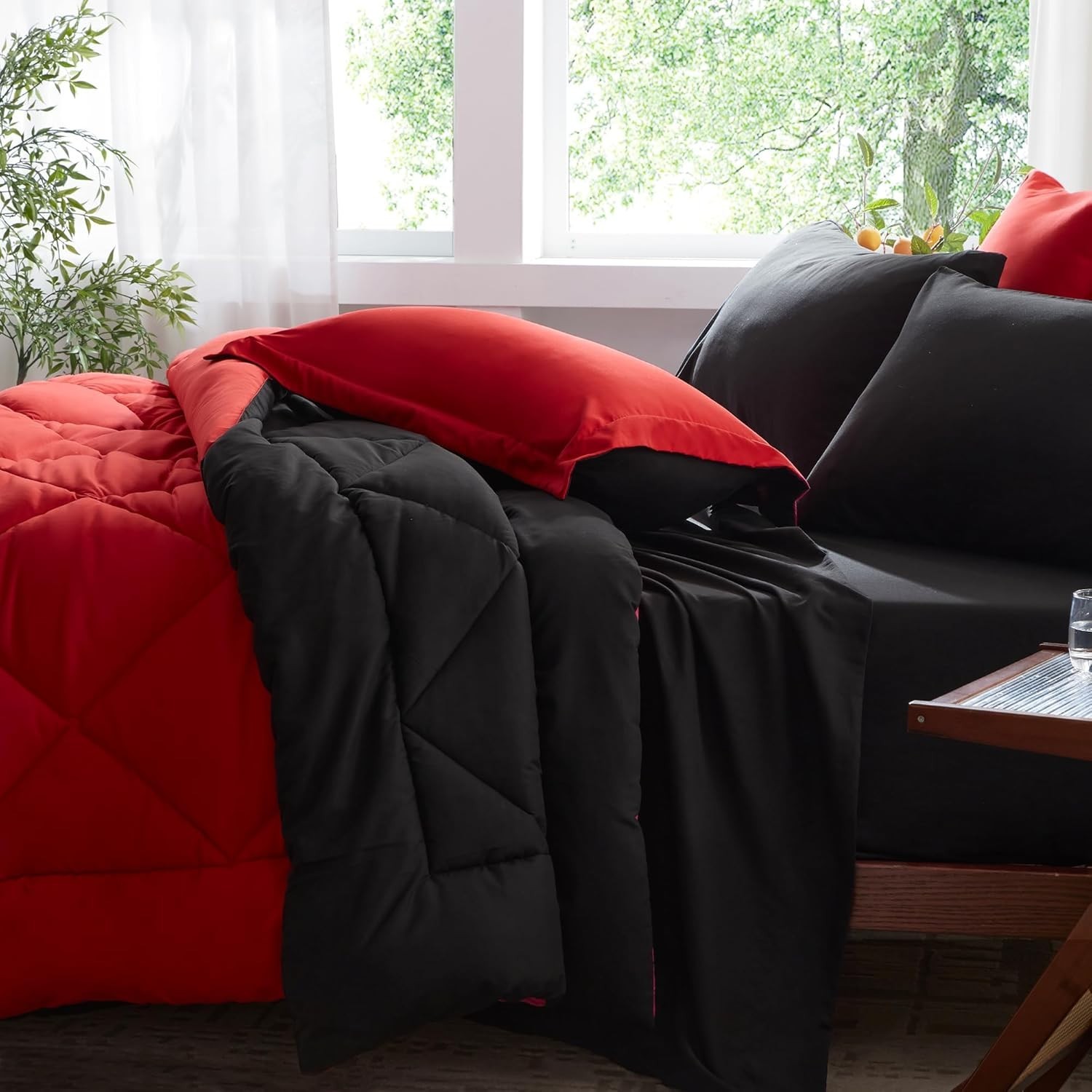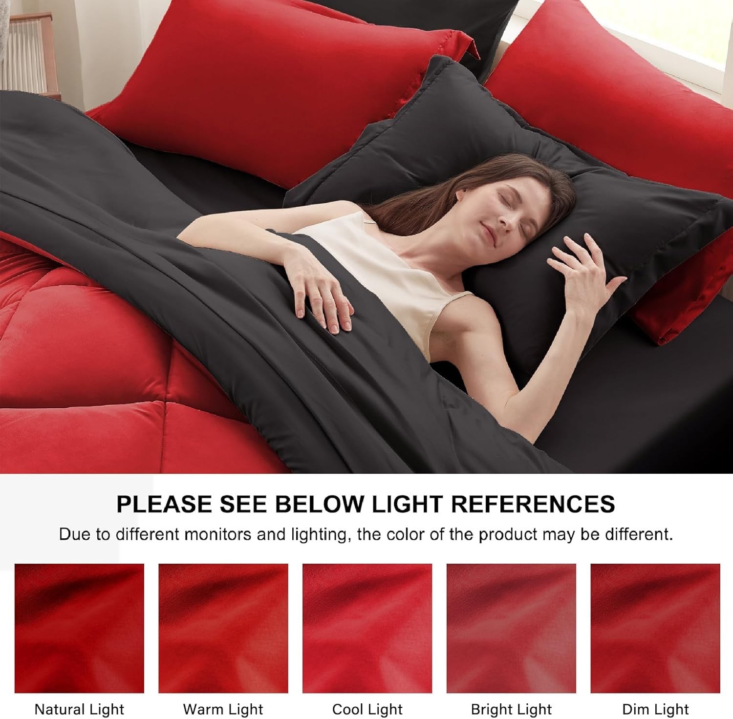 Comforter Set -7 Pieces Bed in a Bag Size, Reversible Queen 01 - Red Black