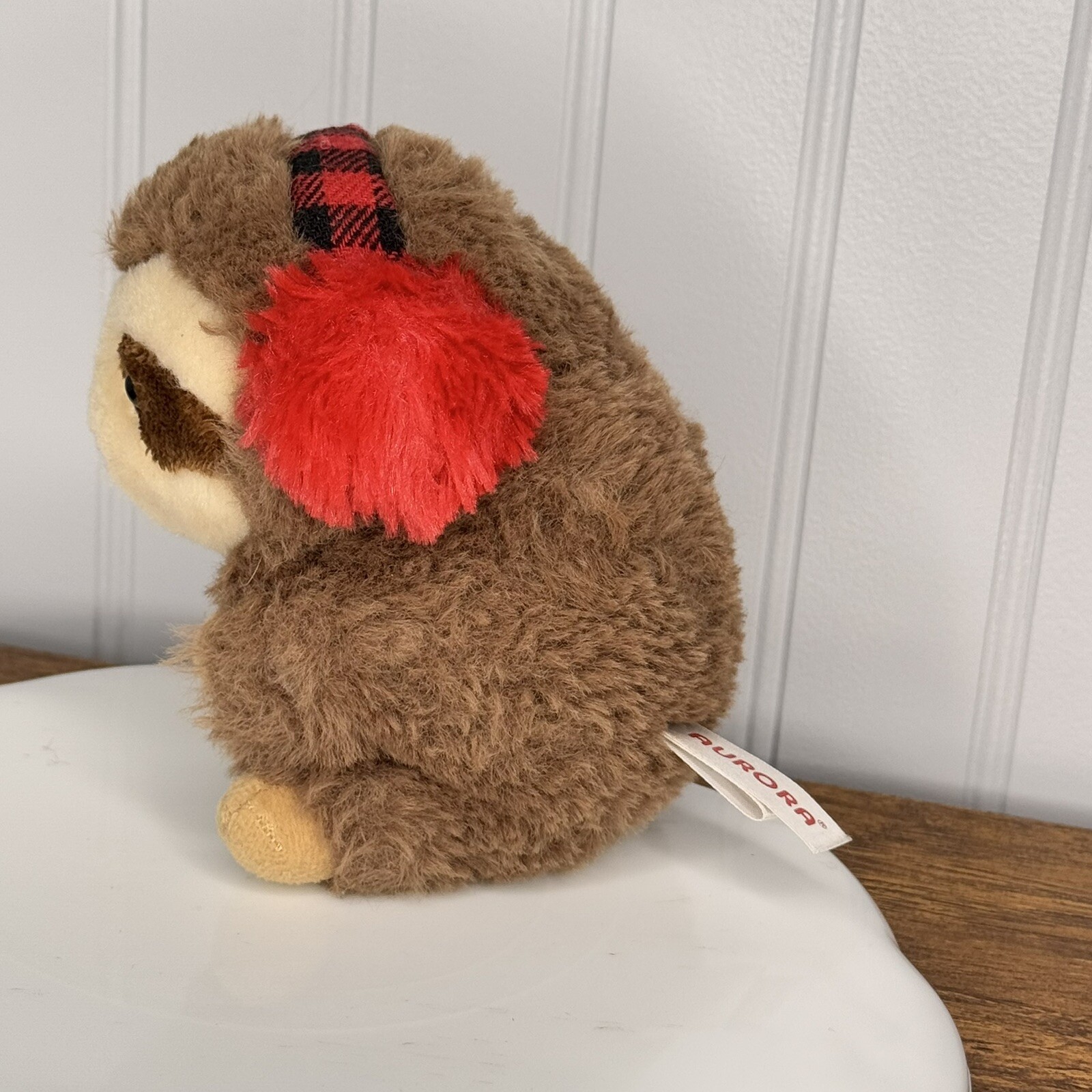 Aurora Rolly Pet Seth Sloth Monkey Plush Brown Soft Ear Muffs Winter Holiday 5