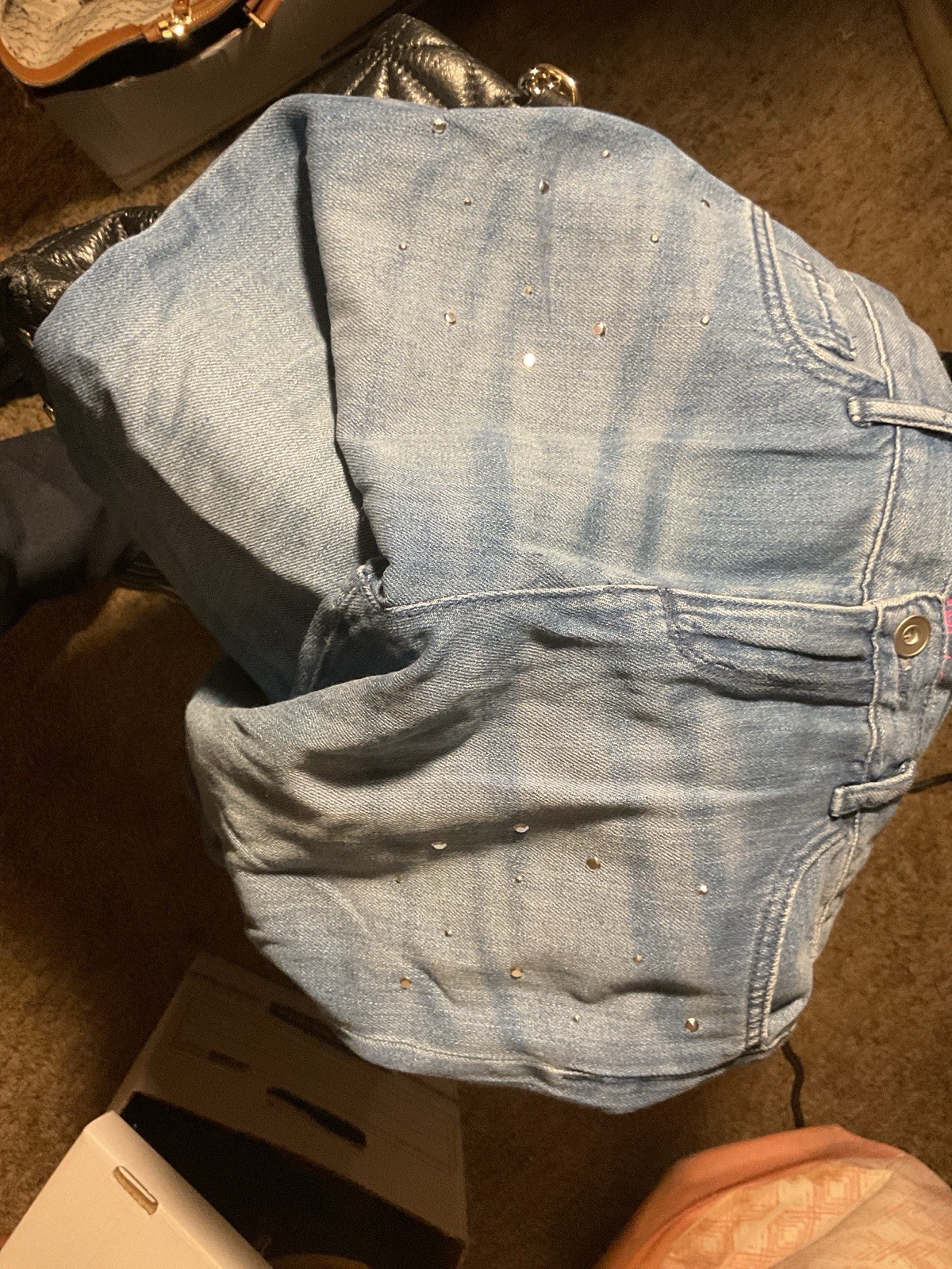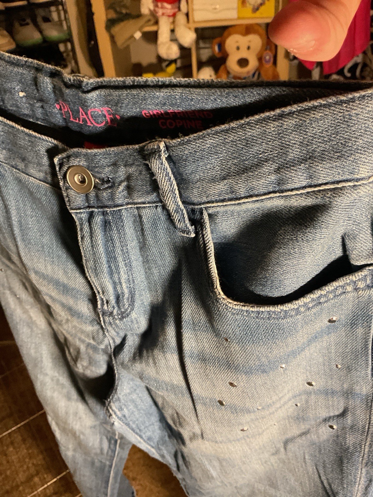как выглядит The Childrens Place Girls Girlfriend Jeans Size 12 Light Blue Studded Denim фото
