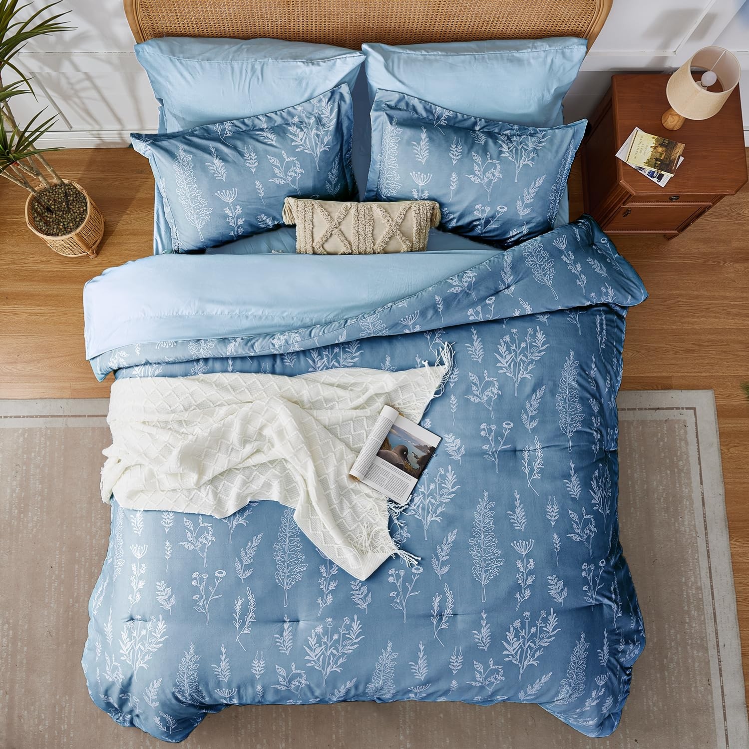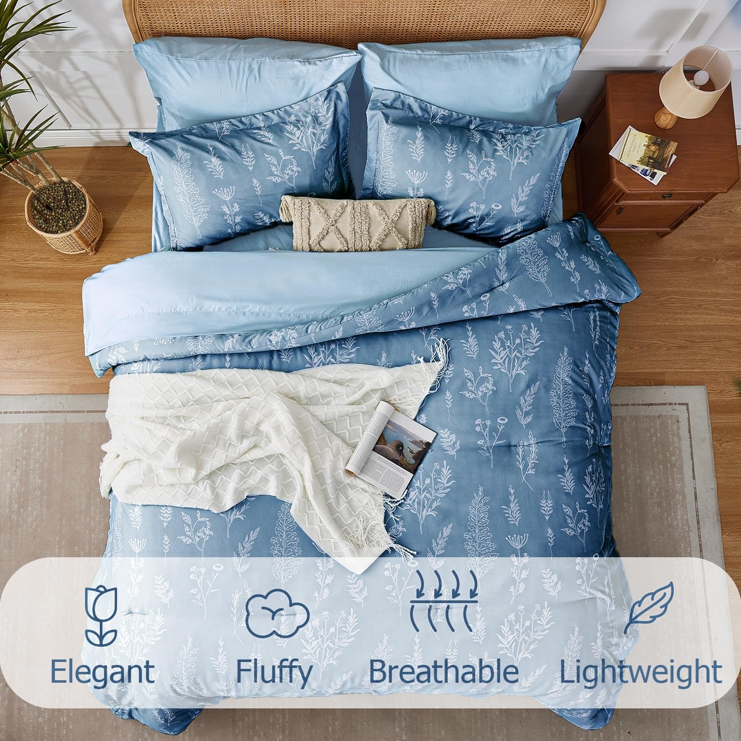 Twin XL Comforter Set Blue, Cute Floral Bed in a Bag Twin XL Boho 5 Pieces, S...